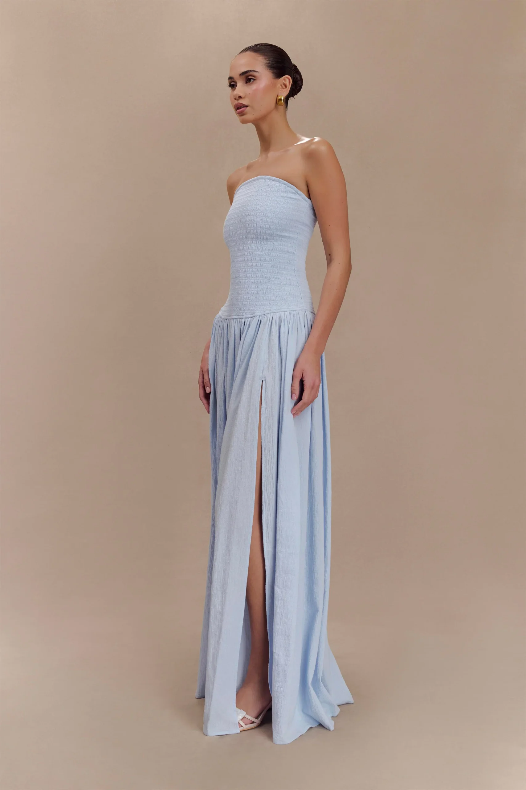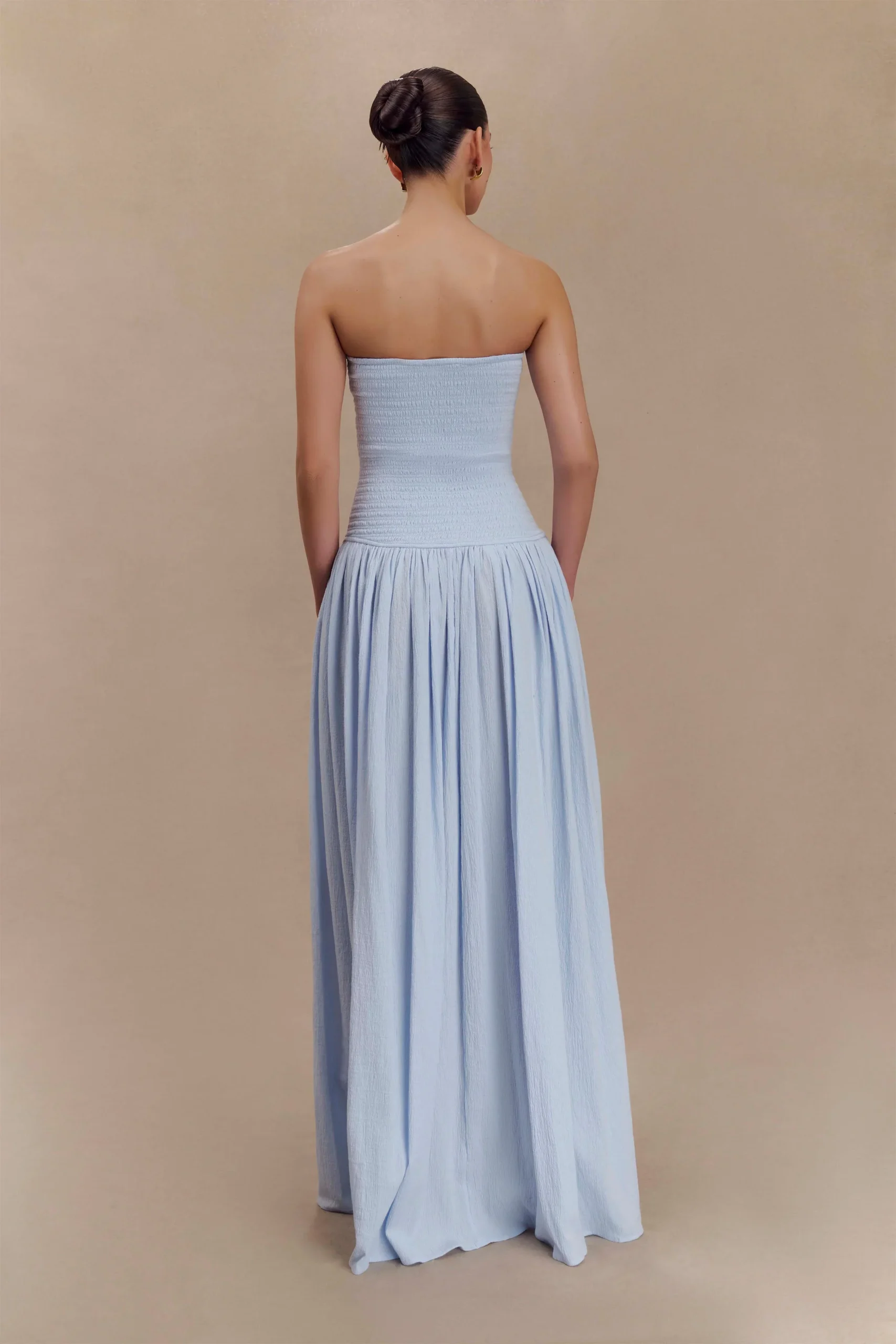Une robe qui danse autour de la cheville telle une caresse solaire au matin d’été. Son tissu en polyester, subtilement drapé, épouse délicatement la taille haute avant de s’épanouir en une jupe A‑line légère. Le bustier sans bretelles dévoile un dos nu gracieux, tandis que les fronces minimes soulignent la poitrine avec élégance. La matière fluide module chaque mouvement d’élan ou de brise, offrant une silhouette longiligne et aérienne. Une robe pensée pour insuffler à chaque instant un souffle de poésie et de liberté.