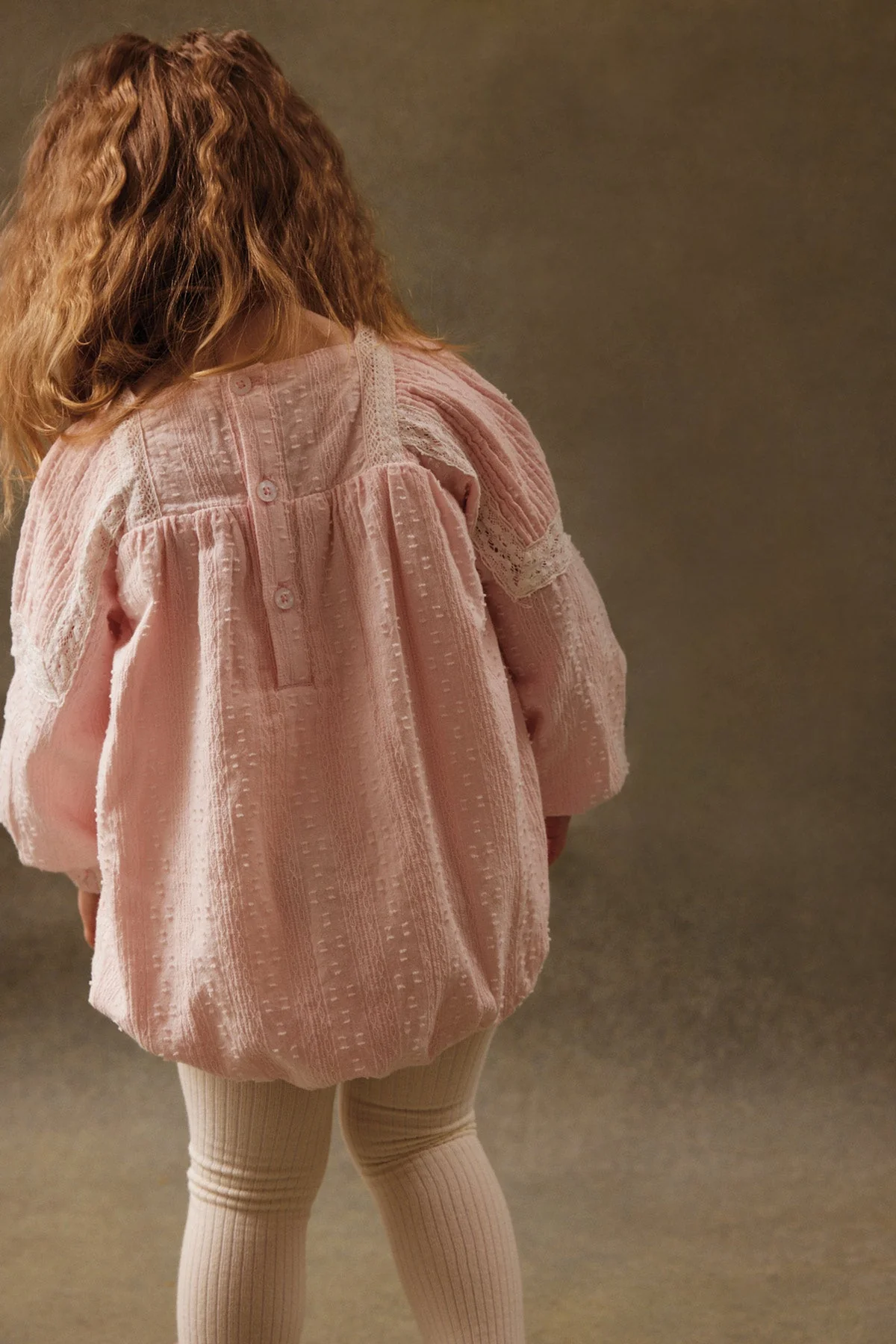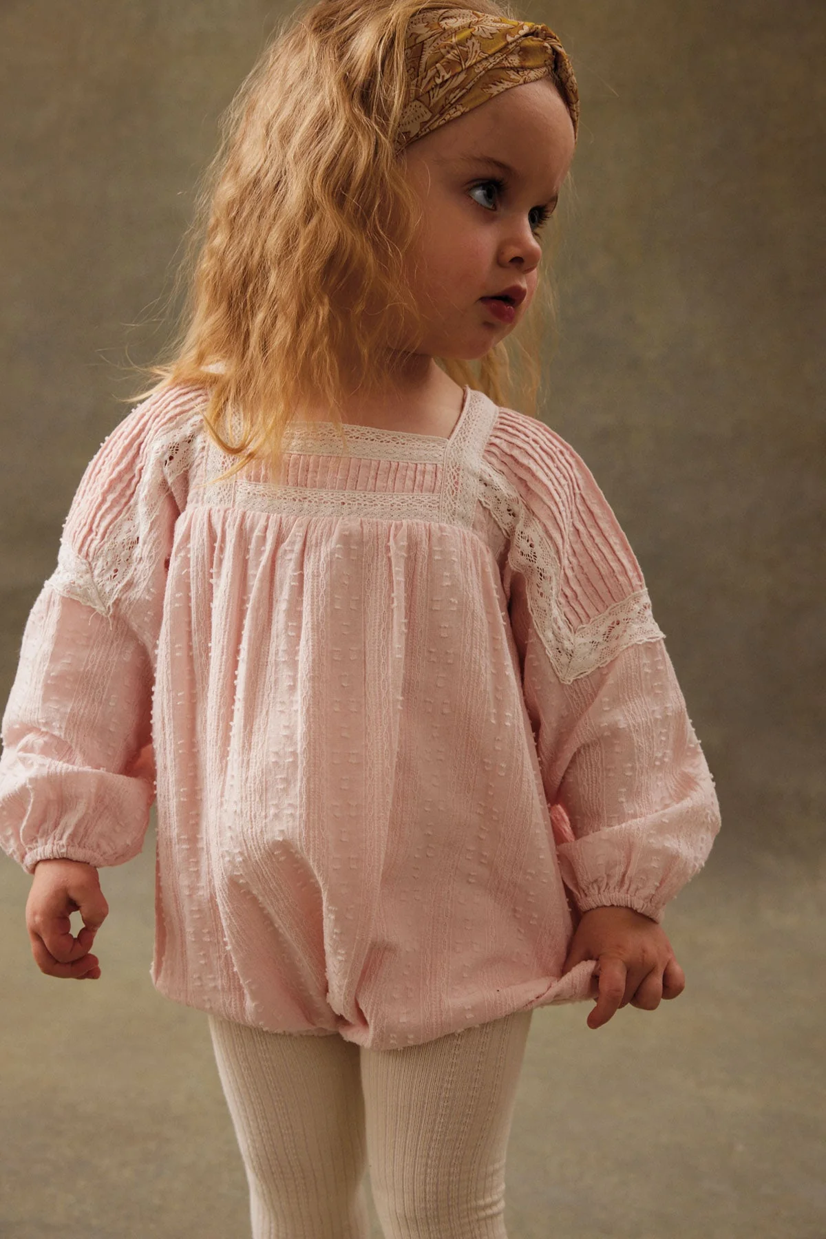 - Bandes de dentelle incrustées sur le plastron, en haut des manches et dans le dos.