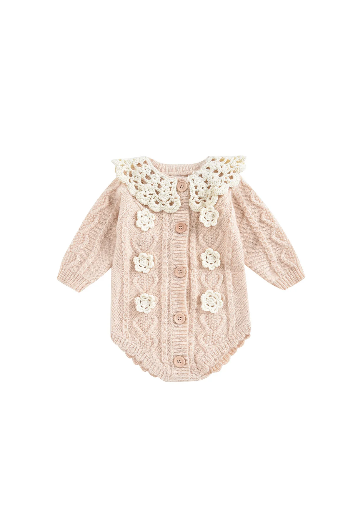 Parce que votre bébé mérite la plus grande attention, chaque fleur sur cette barboteuse a été crochetée à la main. Une pièce pleine de tendresse et de délicatesse pour la prunelle de vos yeux.