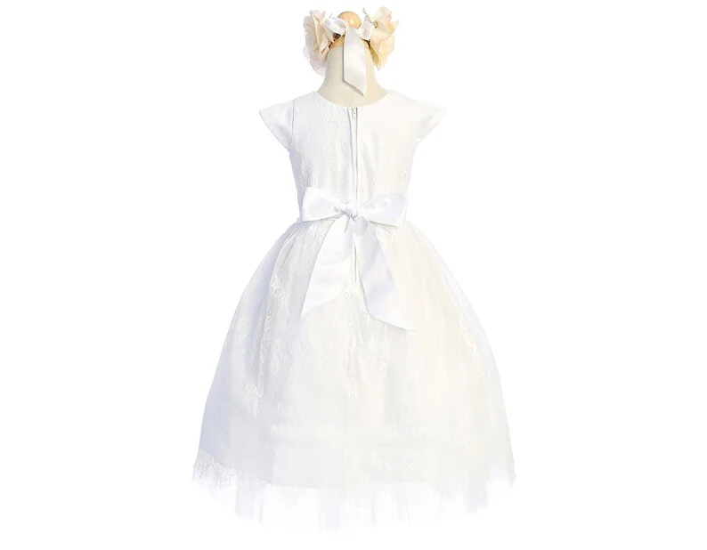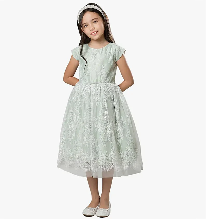 Bébé Hélène est une robe tout en dentelle avec trois choix de couleurs douces.