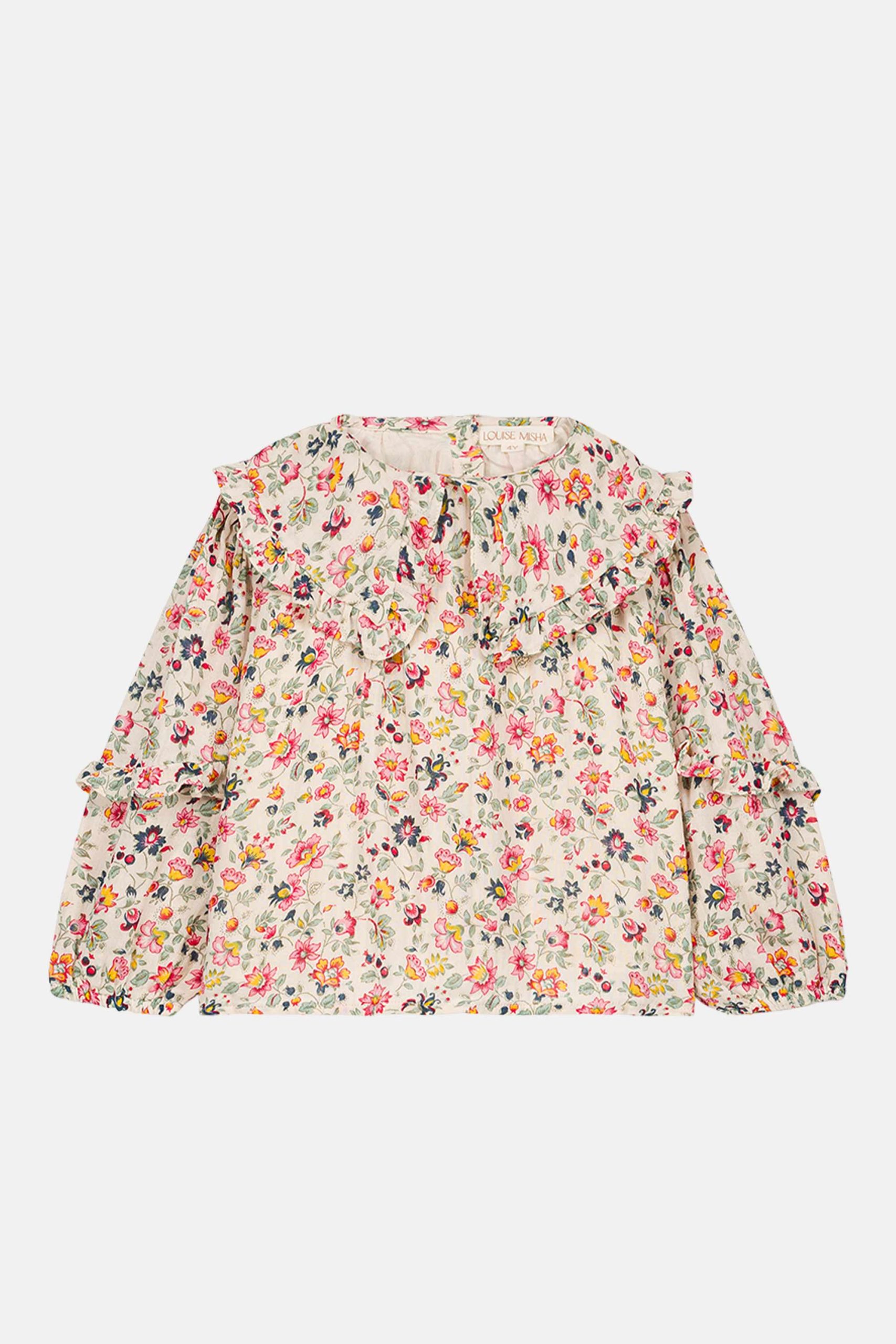 - Manches bouffantes avec détails volantés et poignets élastiqués.