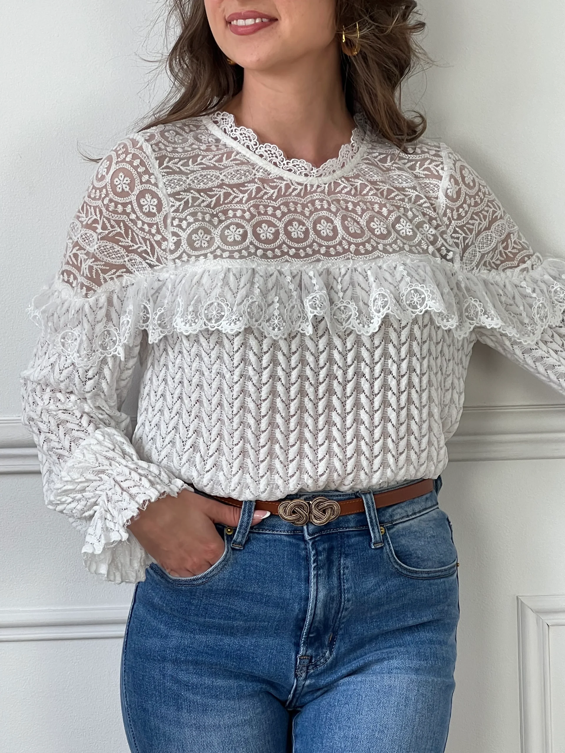 BLOUSE BLANCHE EN BRODERIE ET DENTELLE