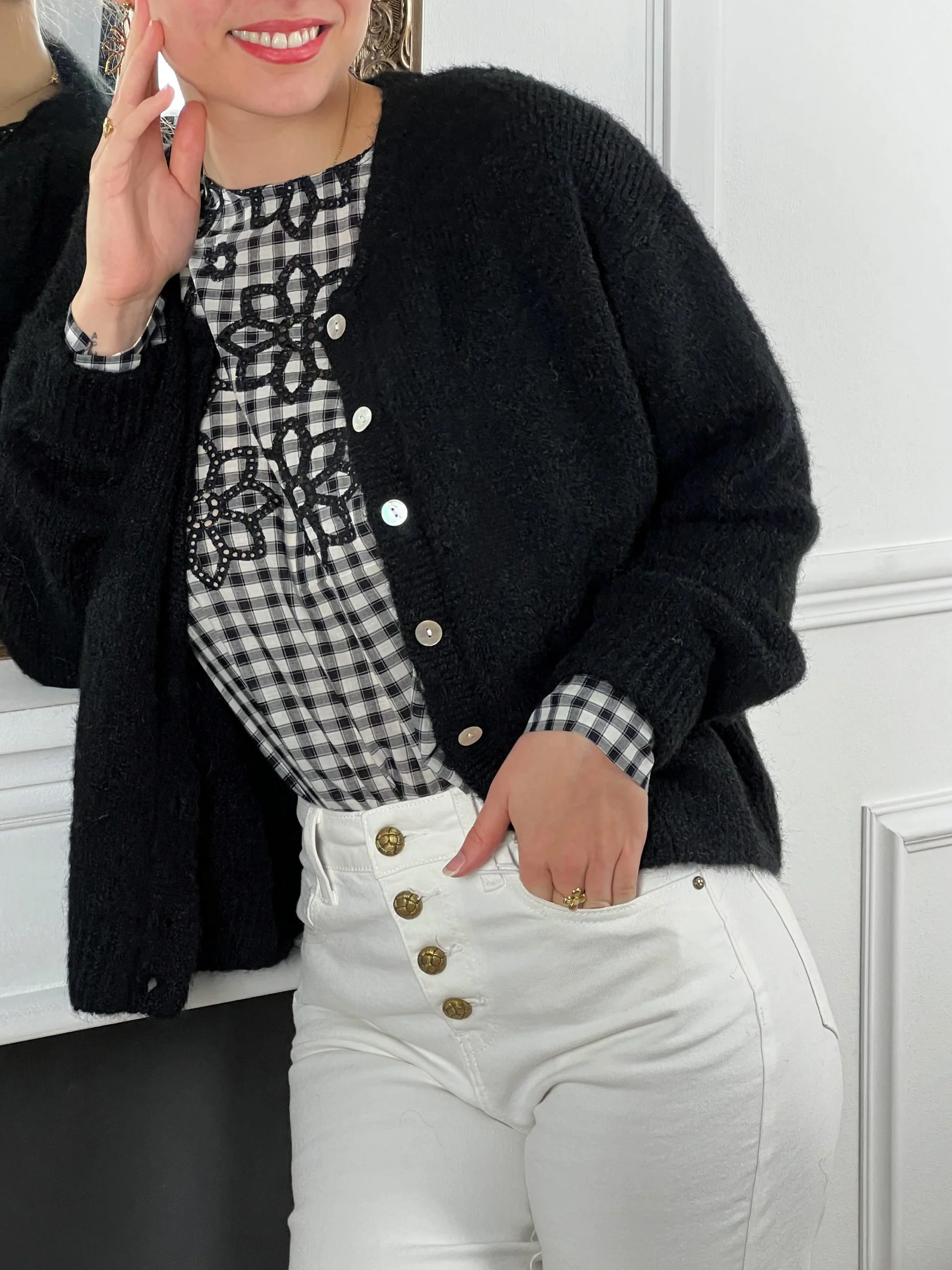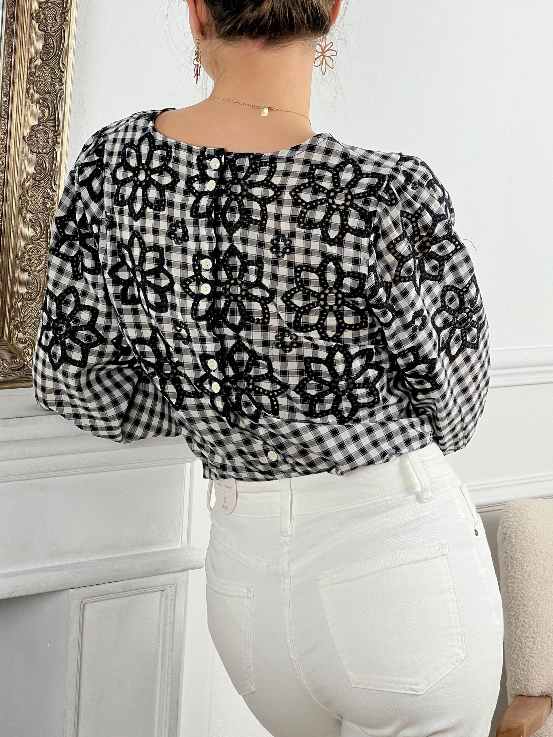 Blouse noire à carreaux avec détails ajourés femme