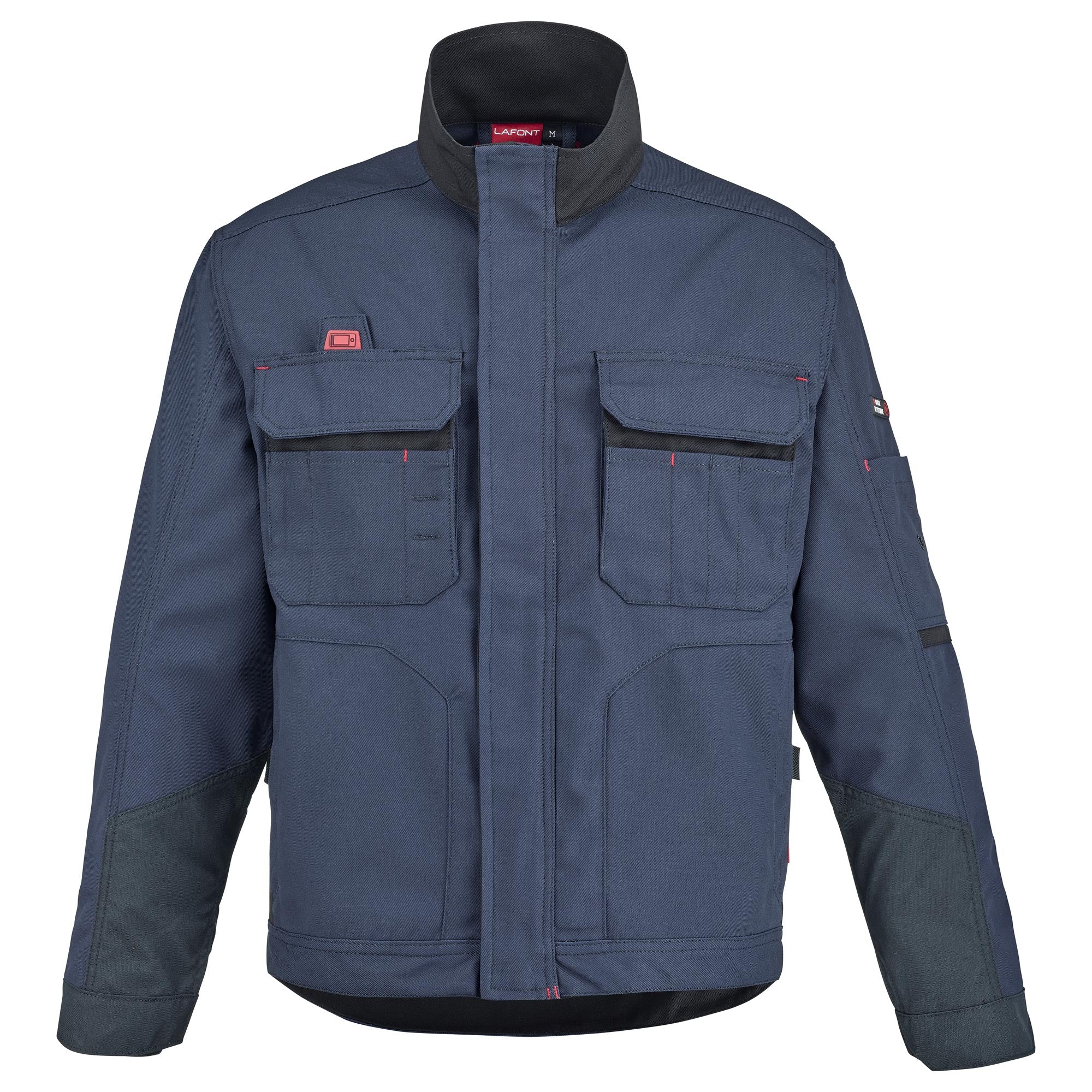 Veste professionnelle renforcée et très fonctionnelle. Conçu dans un textile croisé 60 % coton 40 % polyester 315 gr, le blouson de travail homme Ventus est solide et adapté au travail sur les chantiers. Il dispose également de renforts haute-résistance en Cordura © sur les poignets et les avant-bras. Cette veste de travail se ferme par une fermeture à glissière sous patte maintenue par velcro et possède des réglages sur les poignets et la ceinture permettant de l’ajuster à votre morphologie. Pour une fonctionnalité optimale, ce vêtement professionnel est doté de multiples poches pour garder téléphone et petit outillage à portée de main.