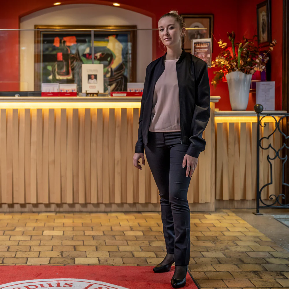 Ce bombers unisexe, avec zip milieu devant discret et inversé, comporte un col teddy en bord côte, des poches passepoilées et une poche téléphone dans la doublure, le bas de manches se finit par un poignet, le bas de vêtement par un élastique caché dans un tunnel. Ce bombers très chic en polyester viscose élasthanne peut s’associer avec nos bas Tarrazu, Latte, Harrar ou Ristretto qui sont dans la même qualité.