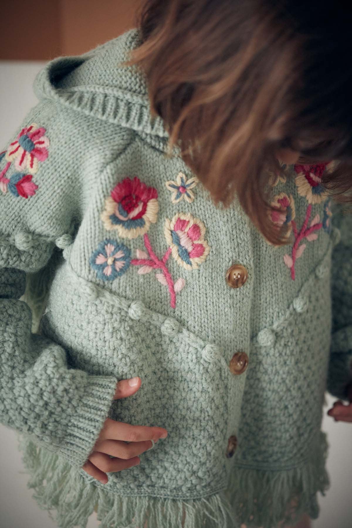 Revoilà l’iconique cape Clara que vous aimez tant ! Cette jolie cape en maille toute douce sublimera n’importe quelle tenue automnale. Ses broderies faites main, son pompon et ses détails frangés lui donnent une allure bohème irrésistible.