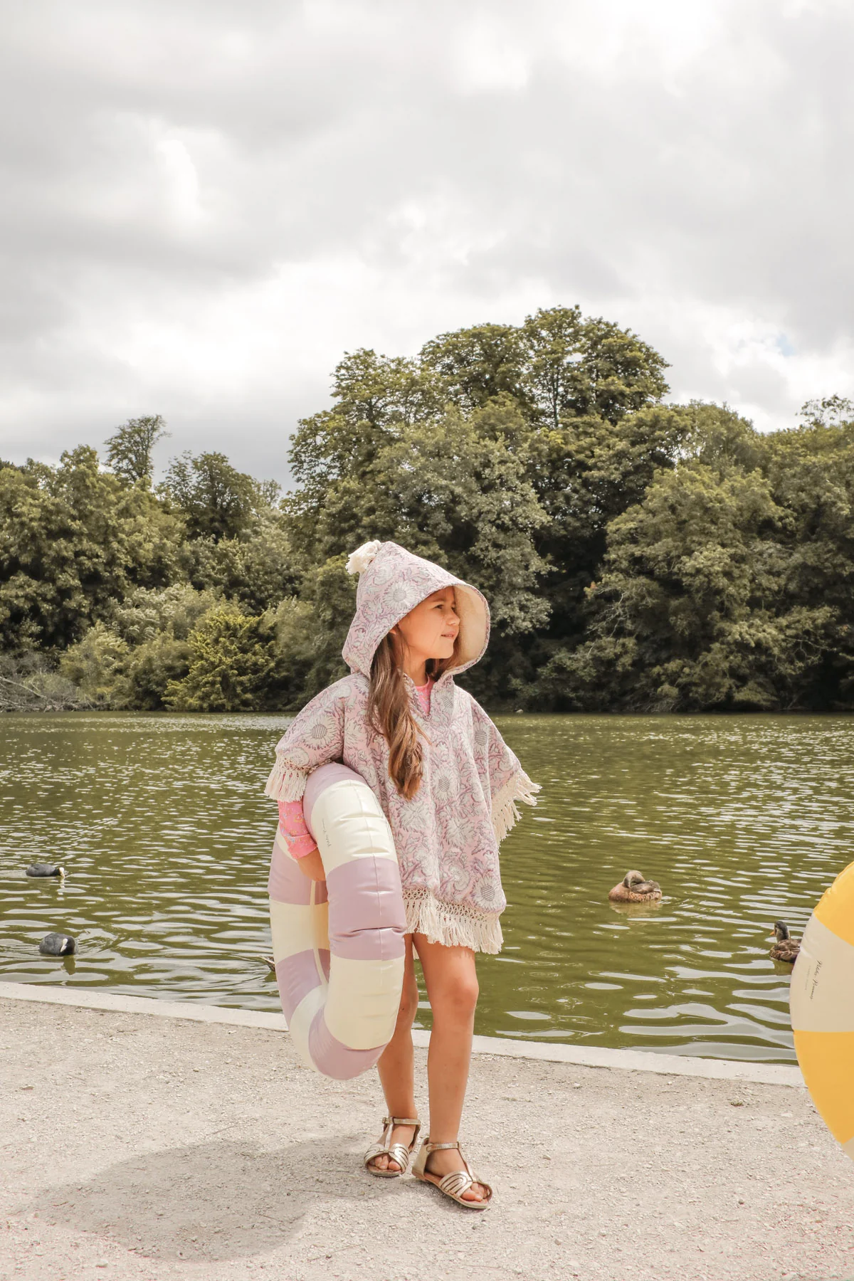 La cape de bain Maël va vite devenir la meilleure amie de la saison chaude et de ses baignades ! Vraiment douce et absorbante, elle a aussi de l’allure avec ses petits détails de franges et de pompons. Et on n’hésite pas à l’assortir à son maillot de bain pour un total look bohème !