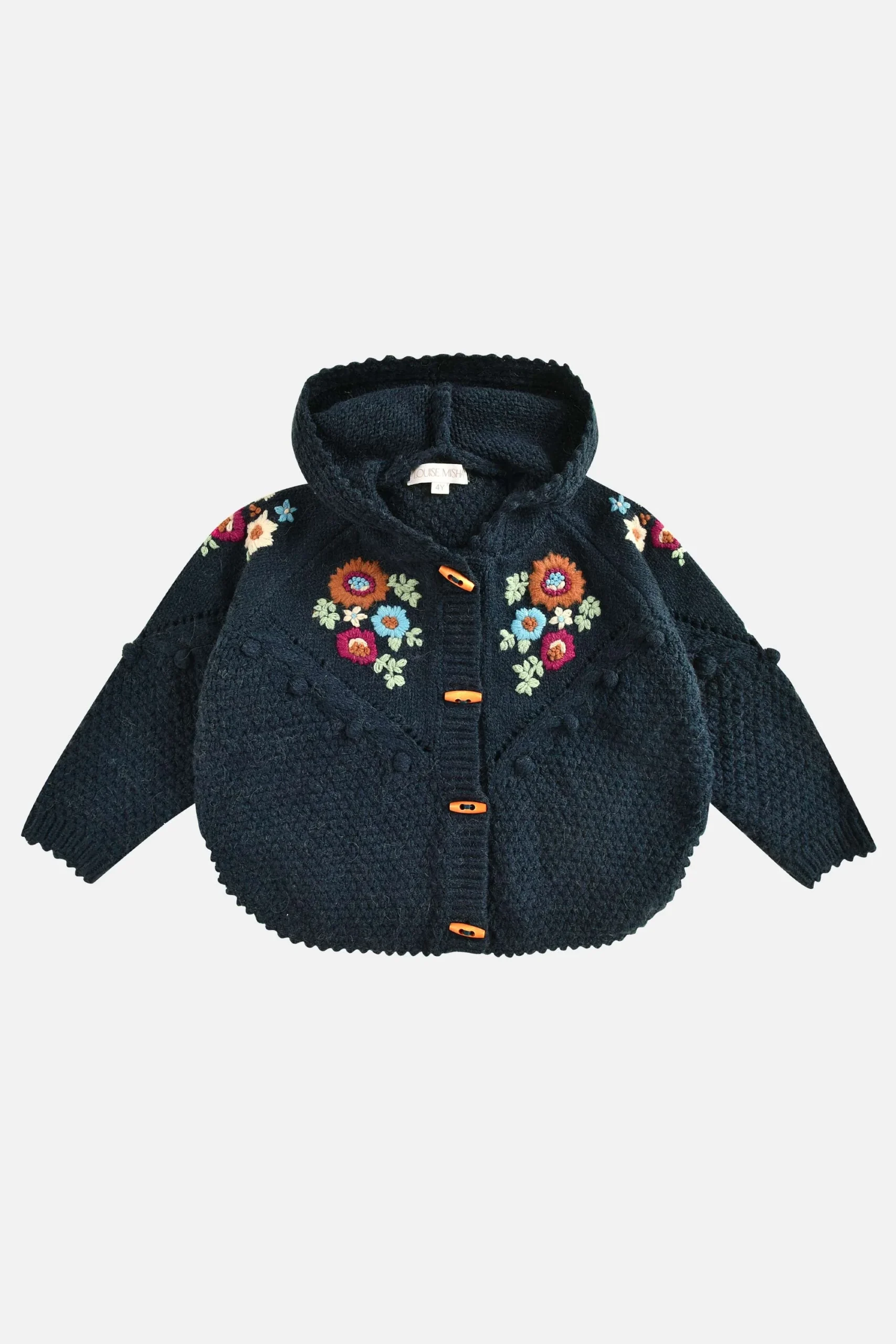 - À noter : pas de petits pompons sur le devant du vêtement pour les tailles inférieures à 4 ans.
