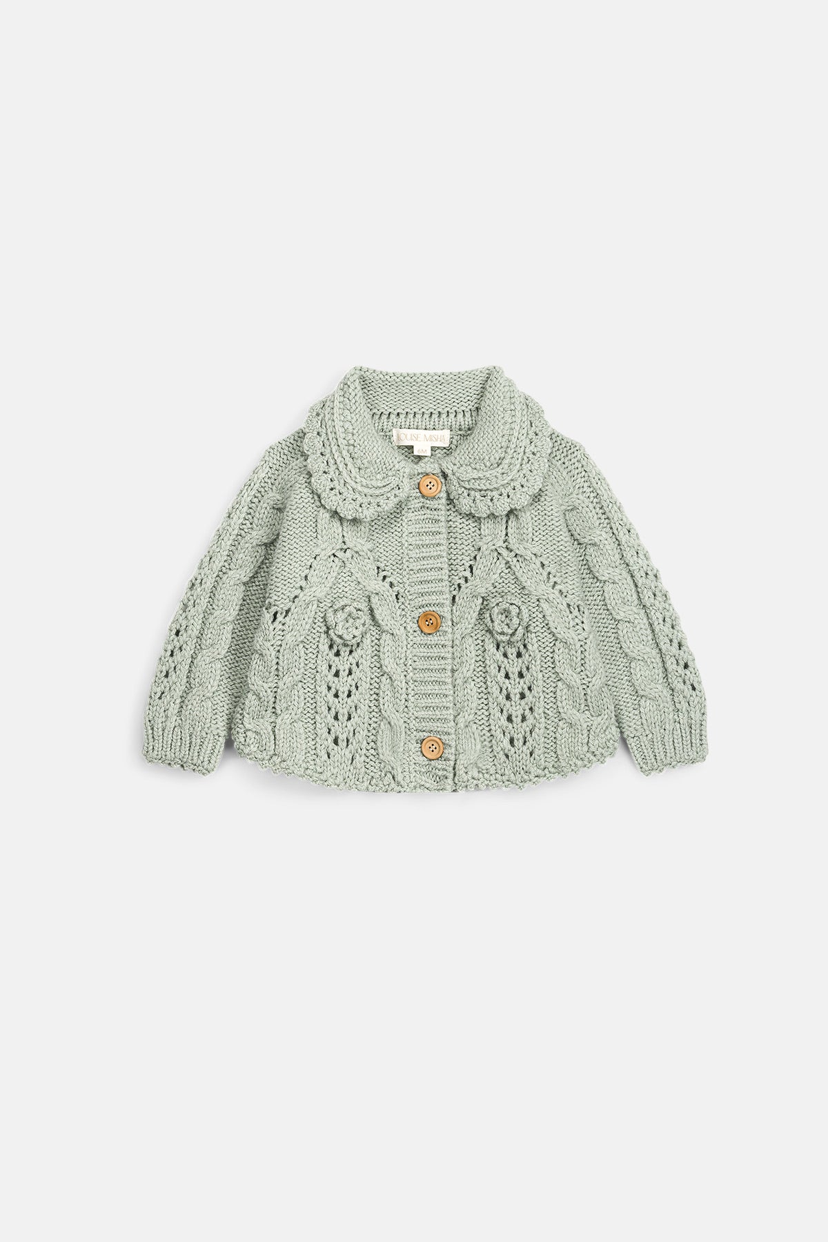 - Col claudine avec finitions festonnées crochetées à la main.