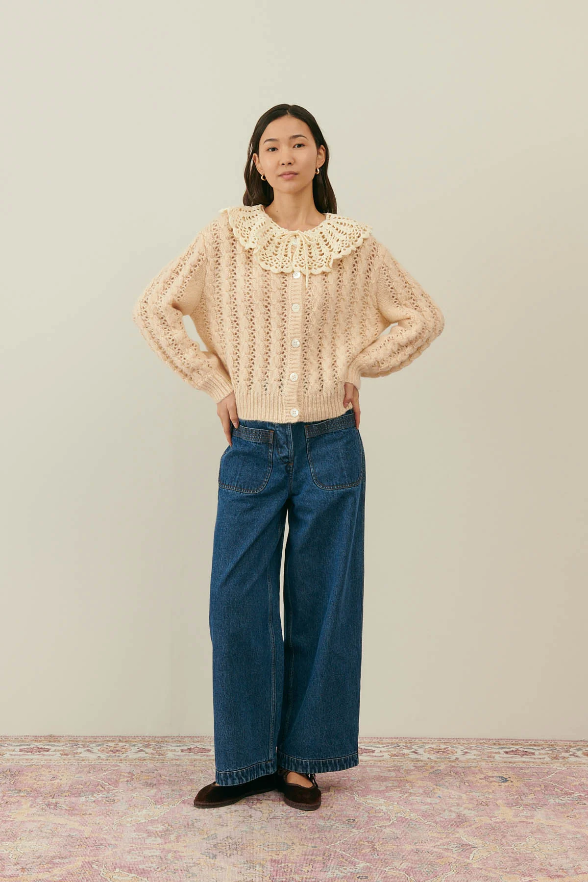 • Cardigan en maille ajourée.