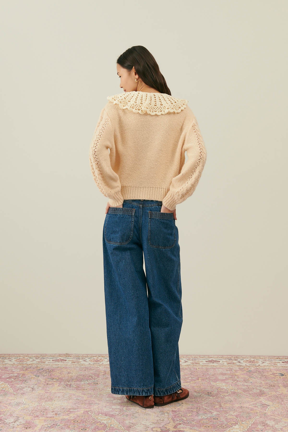 Un col en crochet fait à la main, générateur d’émotions. Une pièce douce et un brin nostalgique, qu’on ne quittera pas de l’hiver.