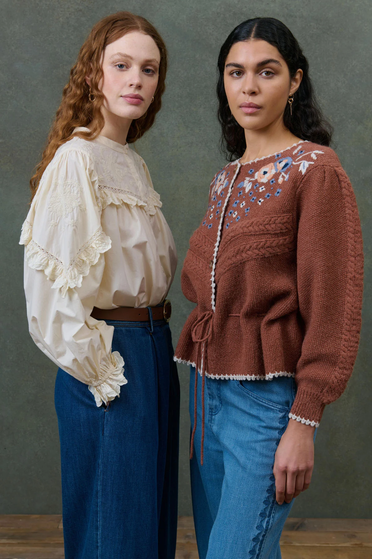 - Broderies fleuries faites main.