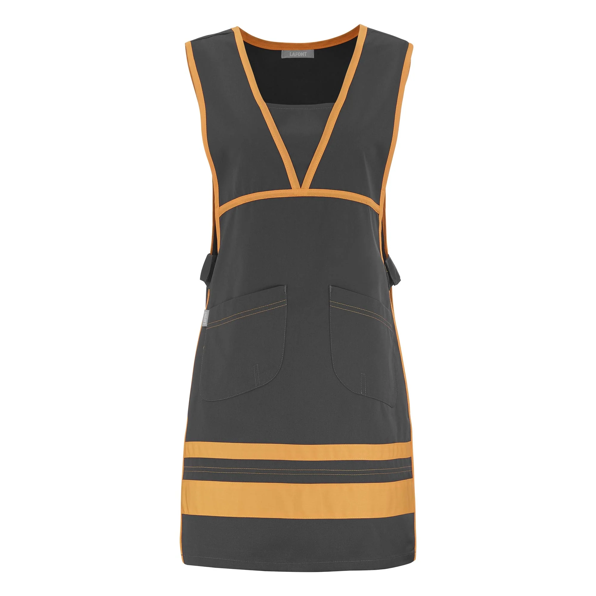 Tablier chasuble professionnel moderne et coloré, très pratique pour les métiers où il est nécessaire de se changer quotidiennement. Facile d’entretien et confortable, la chasuble de travail Mélie est composée d’un tissu Sergé 50% polyester 50% coton 180 gr lavable en machine. Elle est dotée d’une encolure à plastron et s’ajuste grâce à des pattes de réglage à la taille. Cette chasuble professionnelle sans manche se décline en 7 couleurs avec une jolie finition blanche sur l’encolure, la poitrine et le tour du tablier. Deux grandes poches basses complètent la fonctionnalité de ce modèle de tunique chasuble qui conviendra à de nombreuses professions.