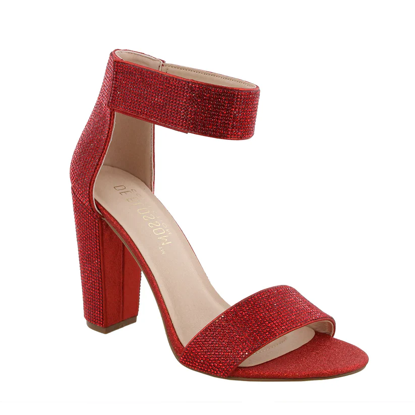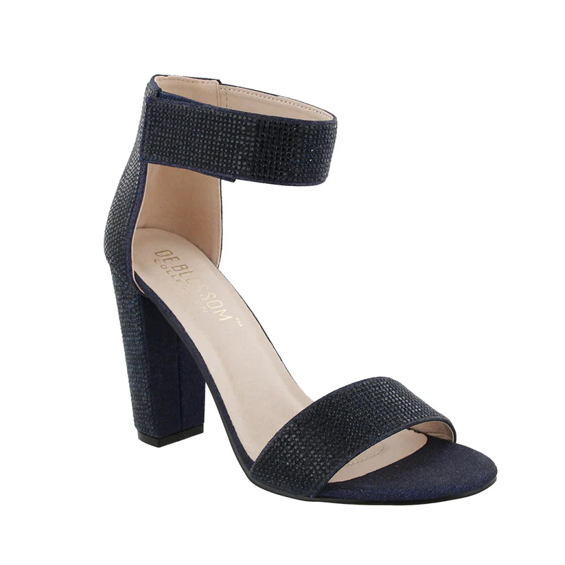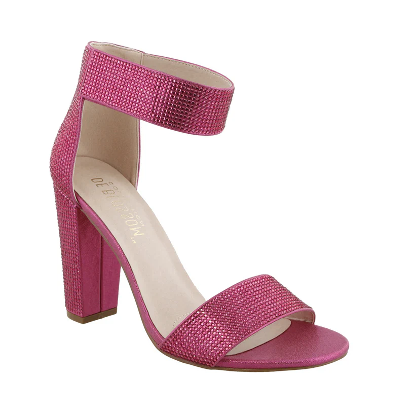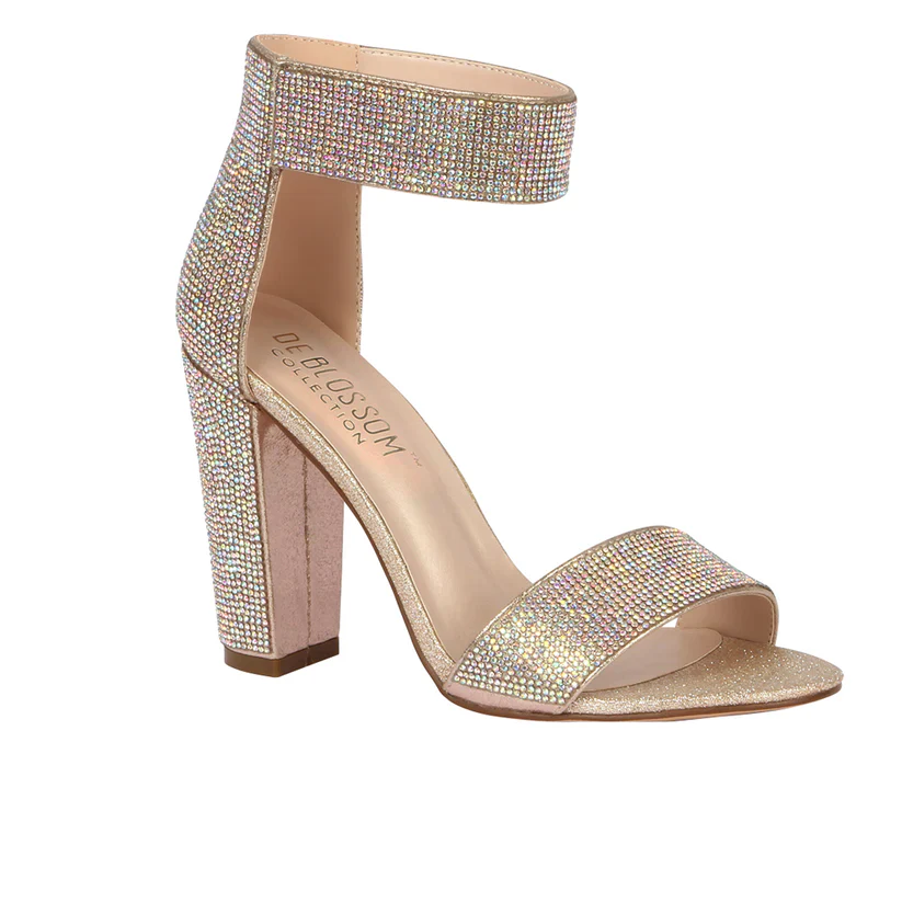 Type: Sangle de cheville Talon blocHauteur du talon : 8,9 cm talon moyenCouleur : noir, champagne, nude, étain, or rose, argent.Matériel: Strass Et Étincelle