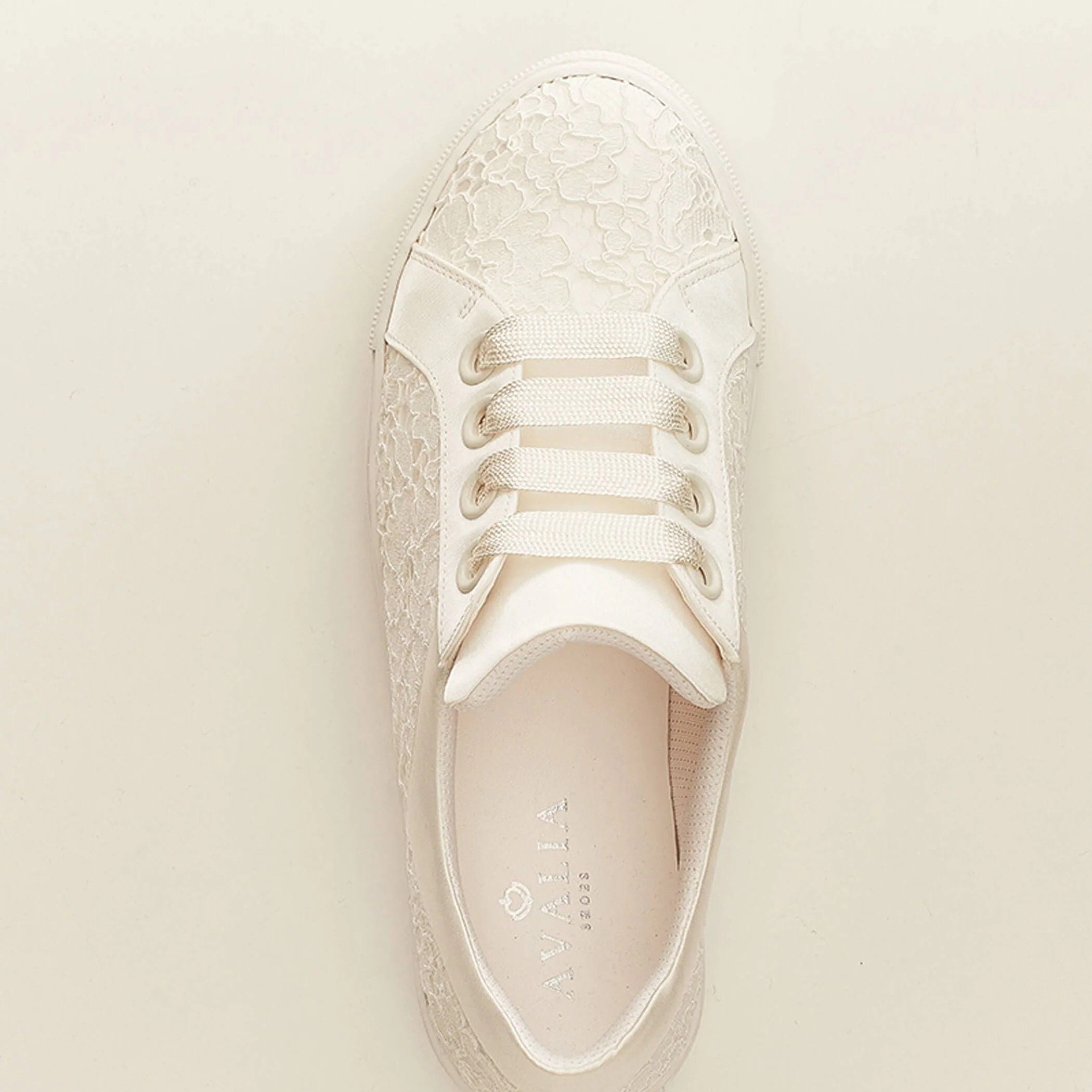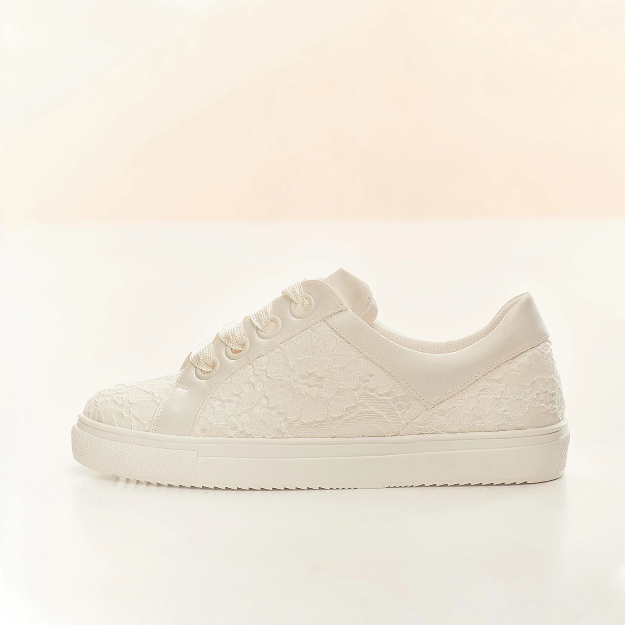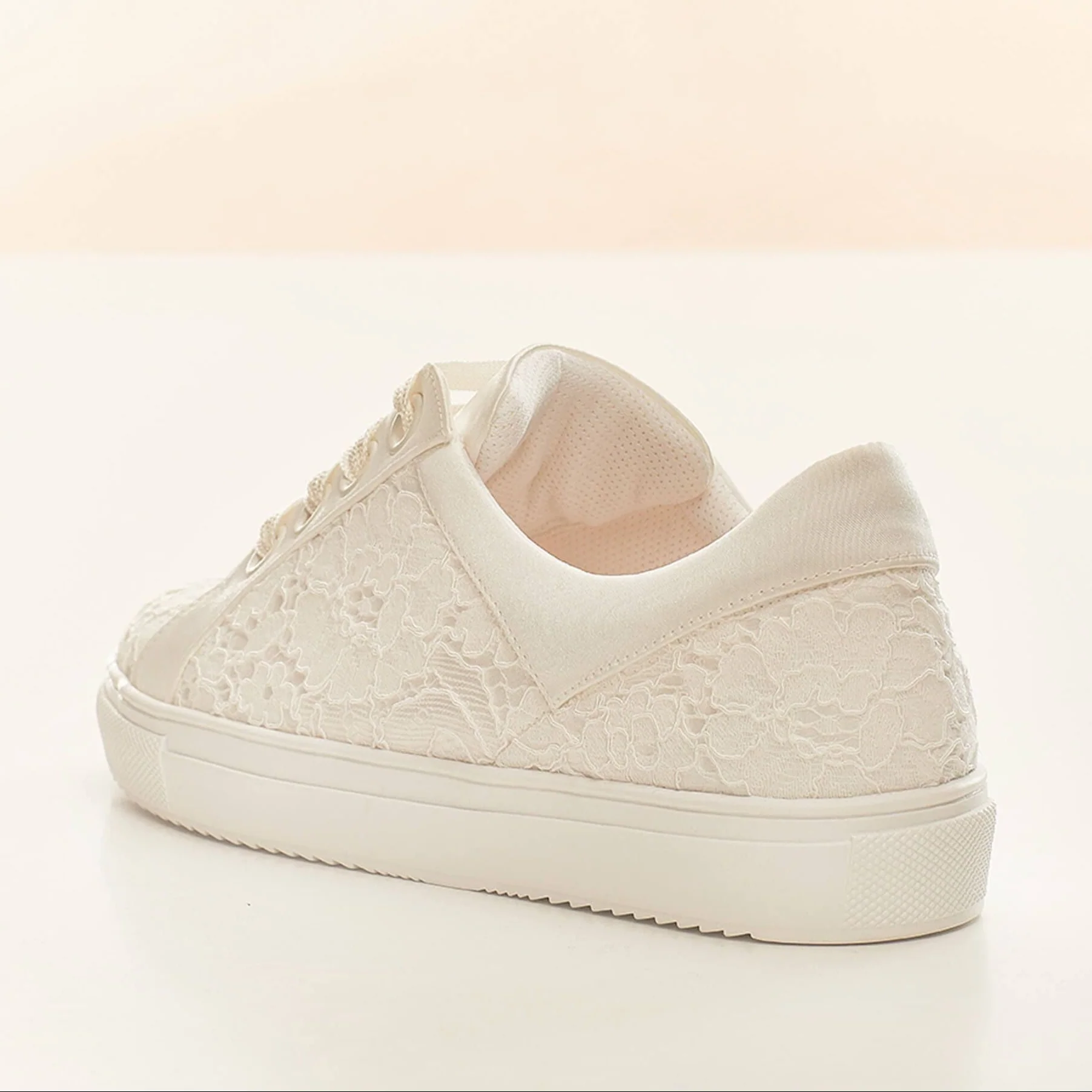 Ces magnifiques sneakers de mariée allient élégance et confort pour vous accompagner tout au long de votre journée spéciale. Conçues en satin et délicate dentelle, elles offrent un style raffiné sans compromis sur le confort.