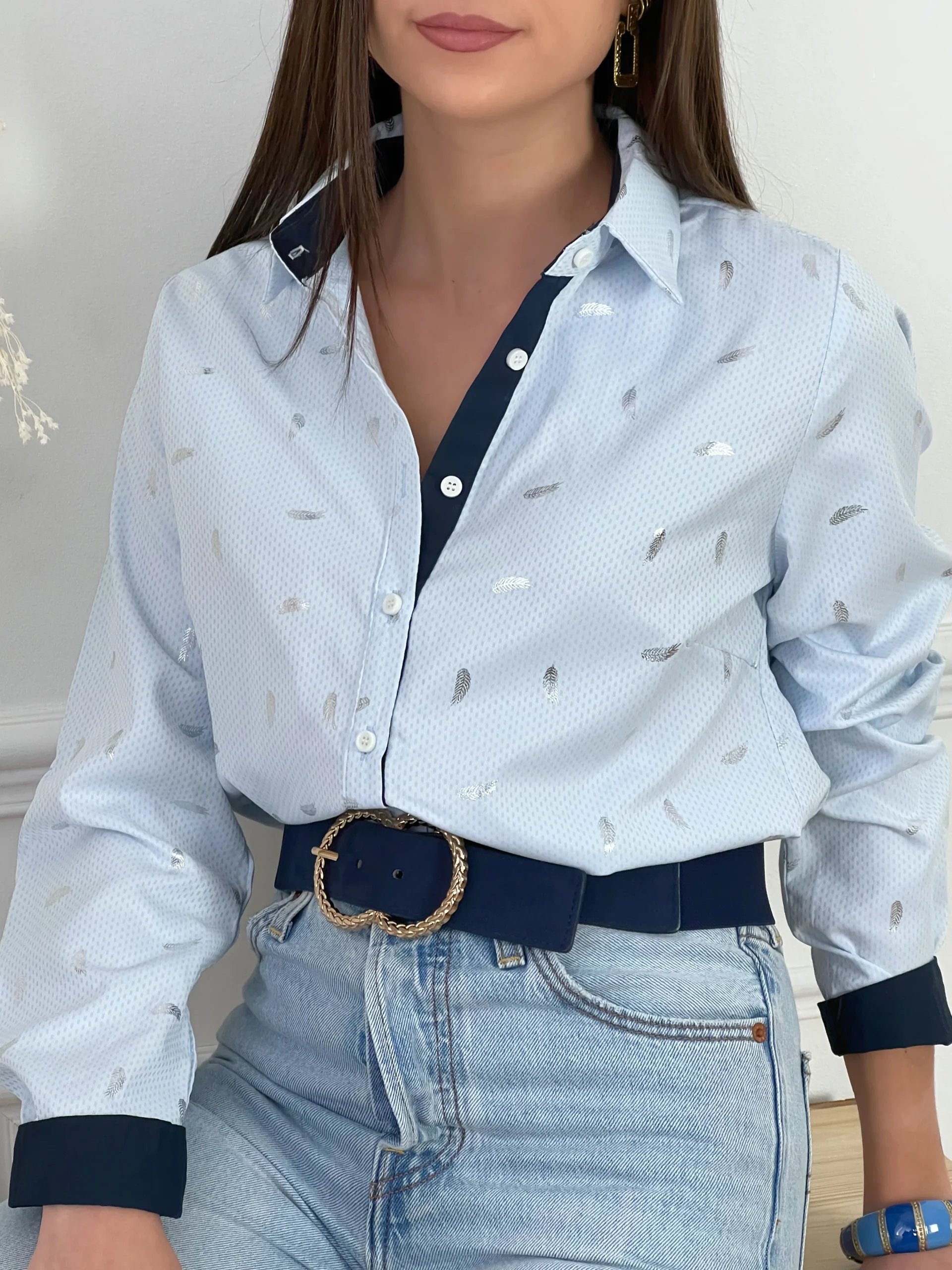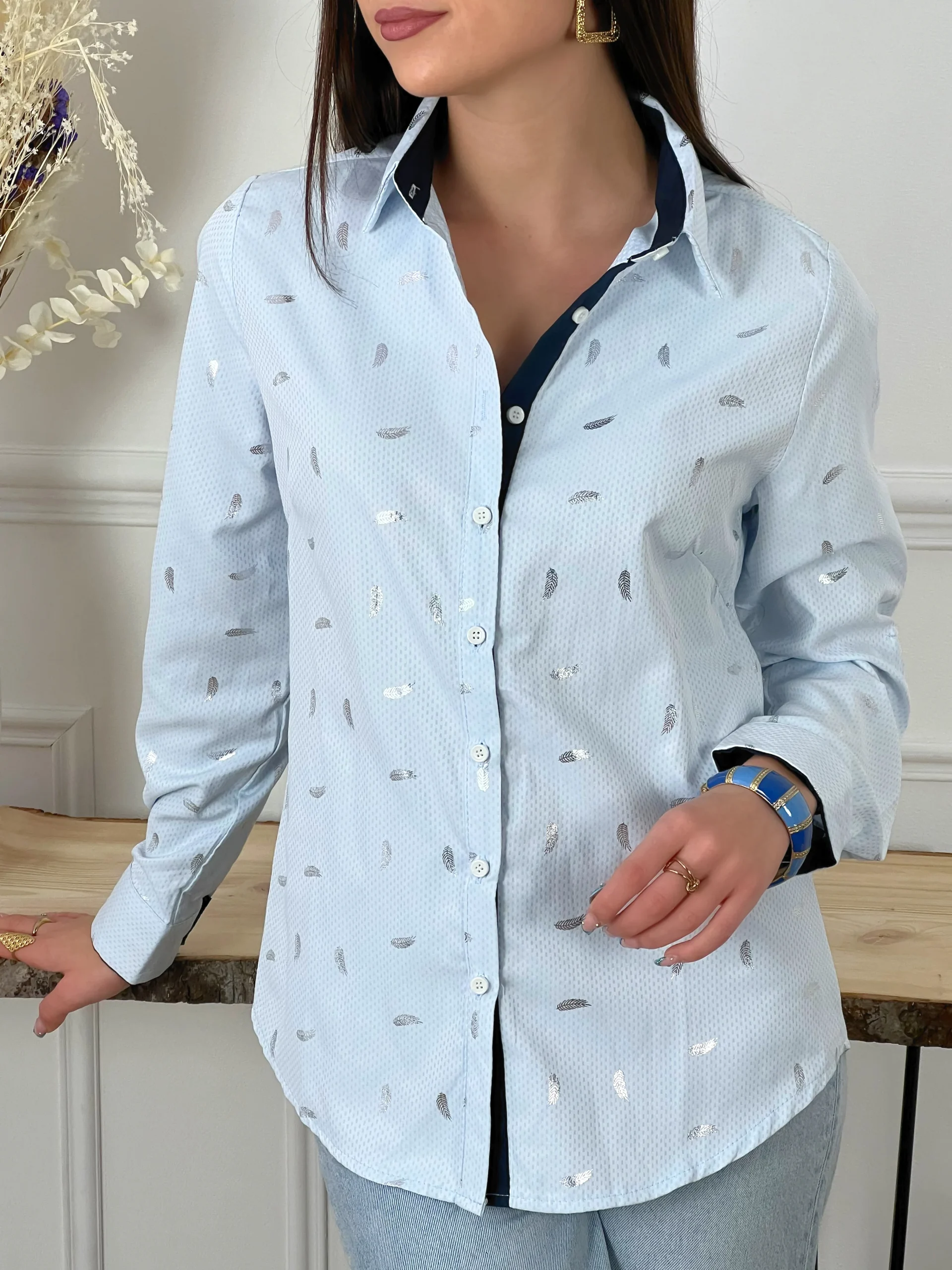 CHEMISE BLEUE A DÉTAILS ARGENTES FEMME