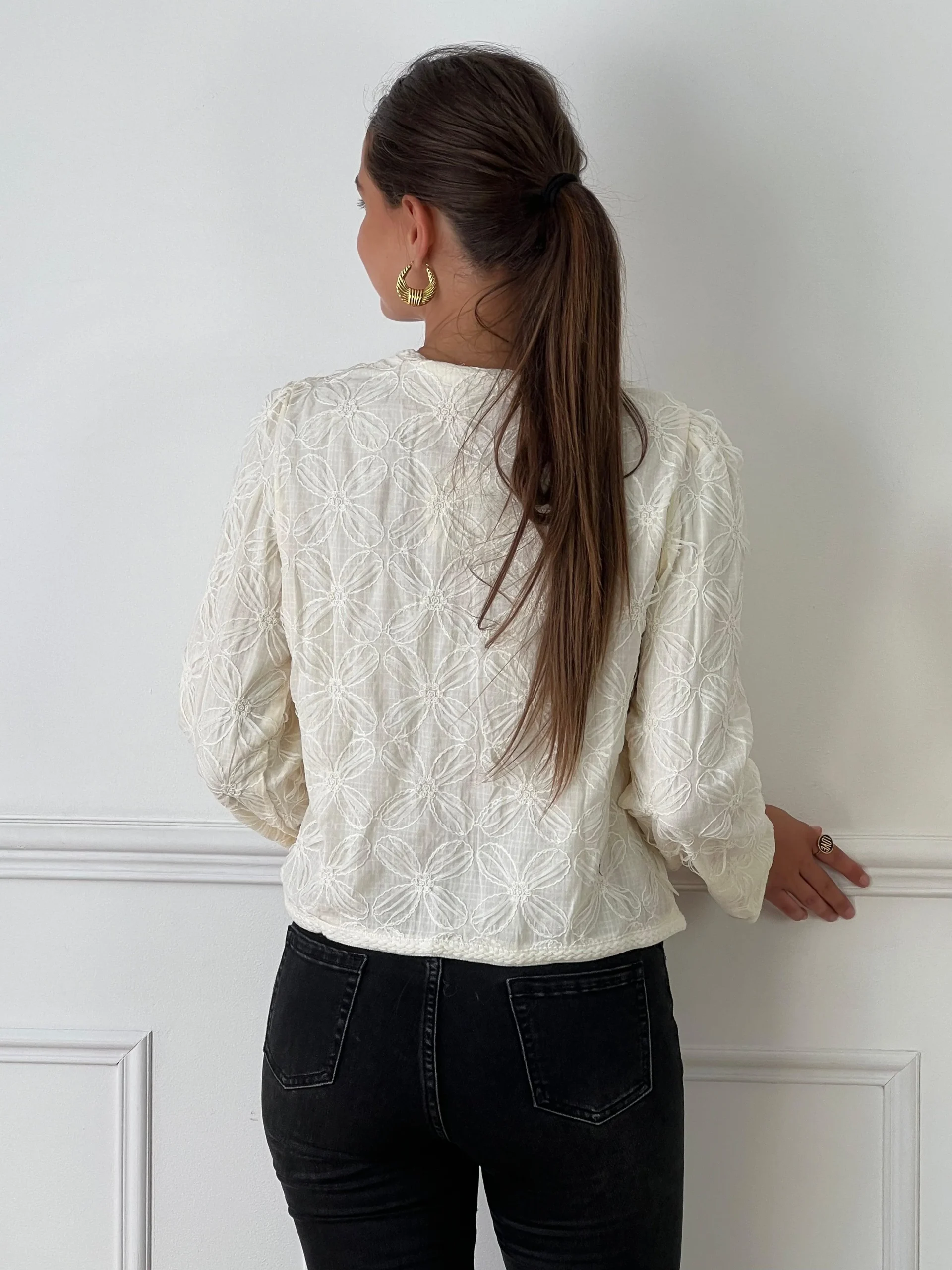 Détail tressé aux manches et le long des boutons