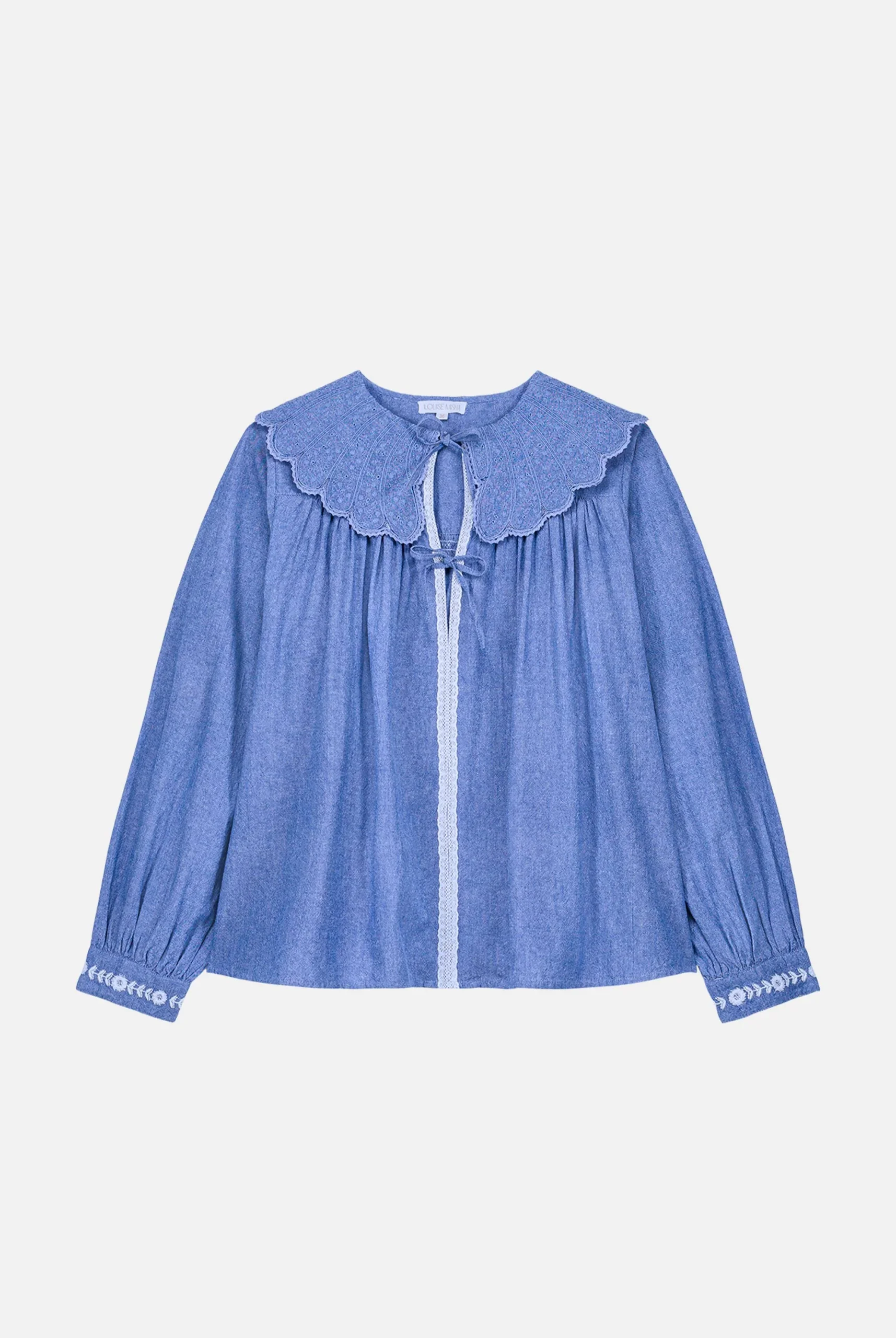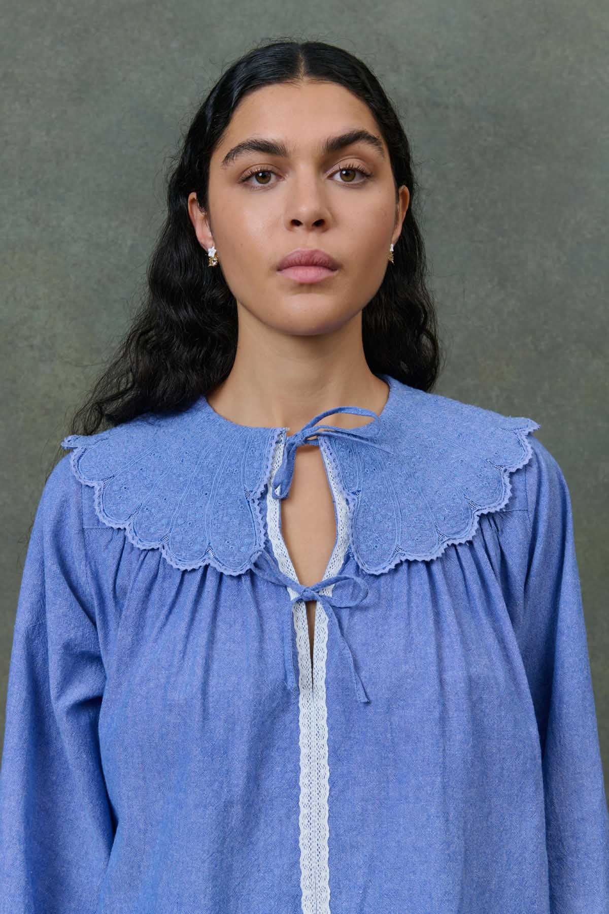 - Col effet pétales en broderie anglaise ton sur ton avec finitions dentelle.