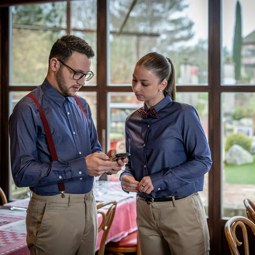 Chemisier professionnel en denim bleu indigo, idéal pour une tenue de serveuse à la fois chic et décontractée. Confectionné dans une toile 100 % coton, le chemiser en jean femme MALTE est souple et confortable. Il dispose d’un col chemisier avec pied de col, de pattes capucin fermées par boutons aux poignets et se ferme par un boutonnage à 6 boutons. Indémodable et facile à porter, cette chemise manche longue pour femme s’accordera à votre style vestimentaire, au travail comme dans la vie de tous les jours. Légèrement cintrée, la chemise de service MALTE se décline de la taille XS à 3XL pour s’adapter à toutes les silhouettes.
