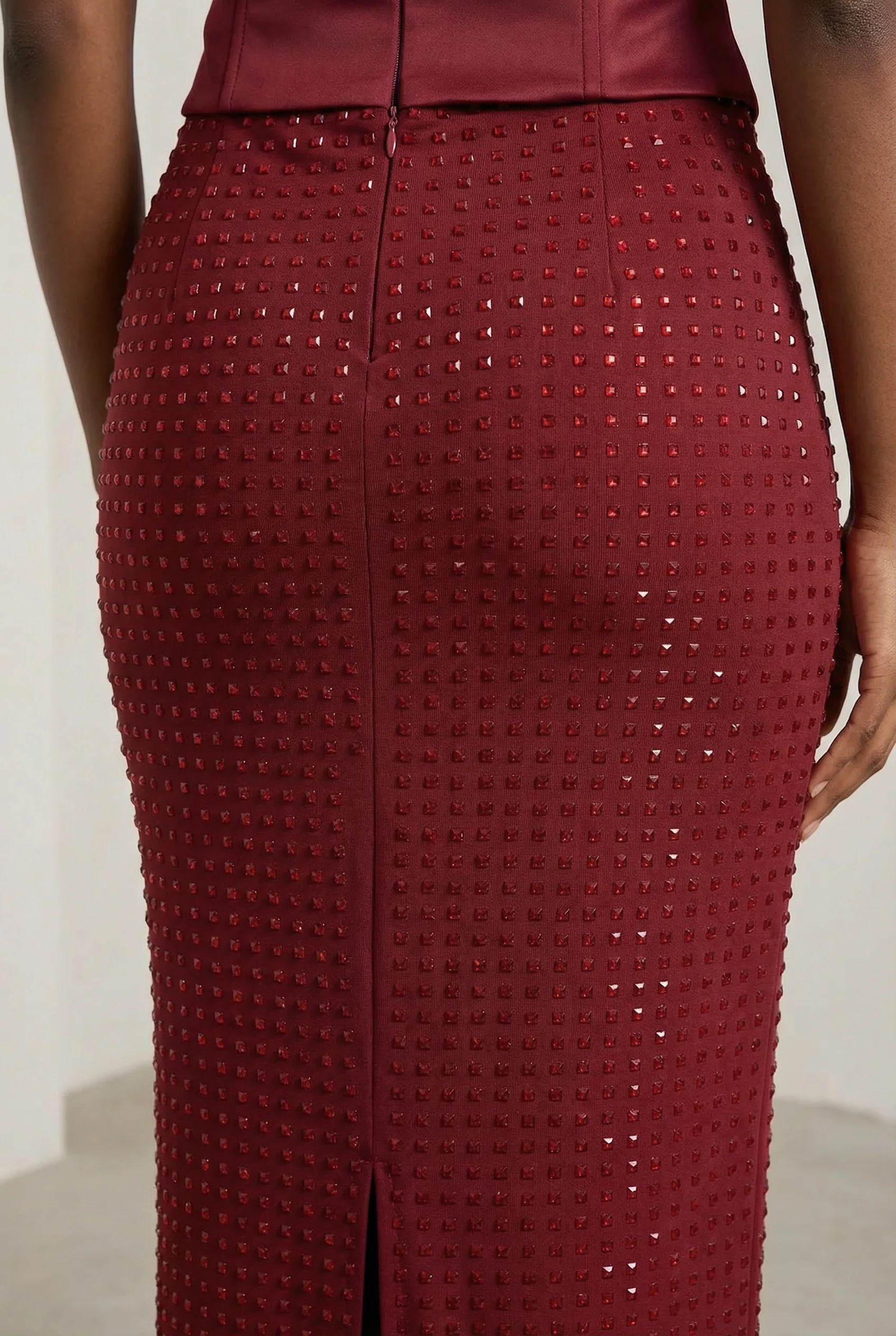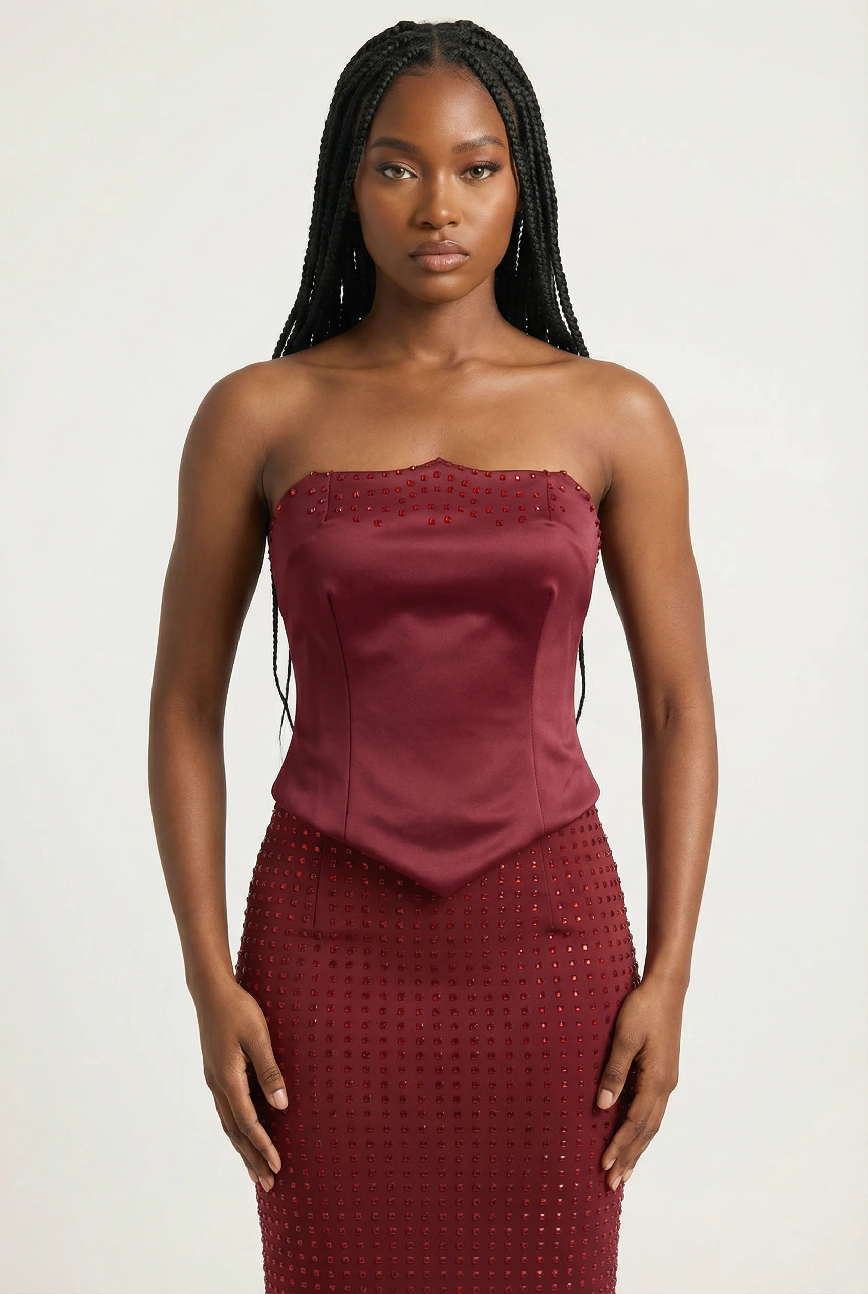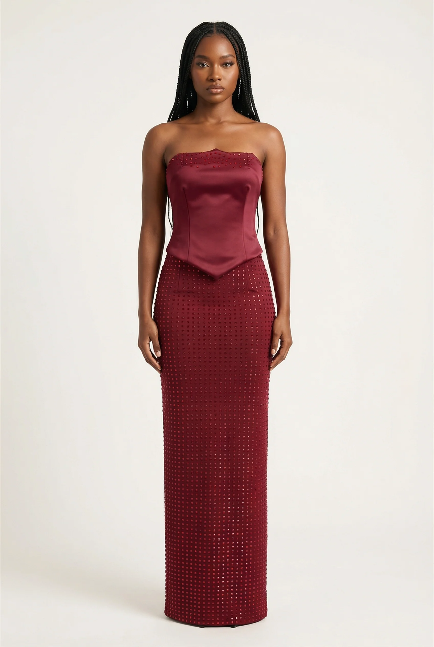Clémence Ensemble Bustier & Jupe Longue – Rouge Vin
