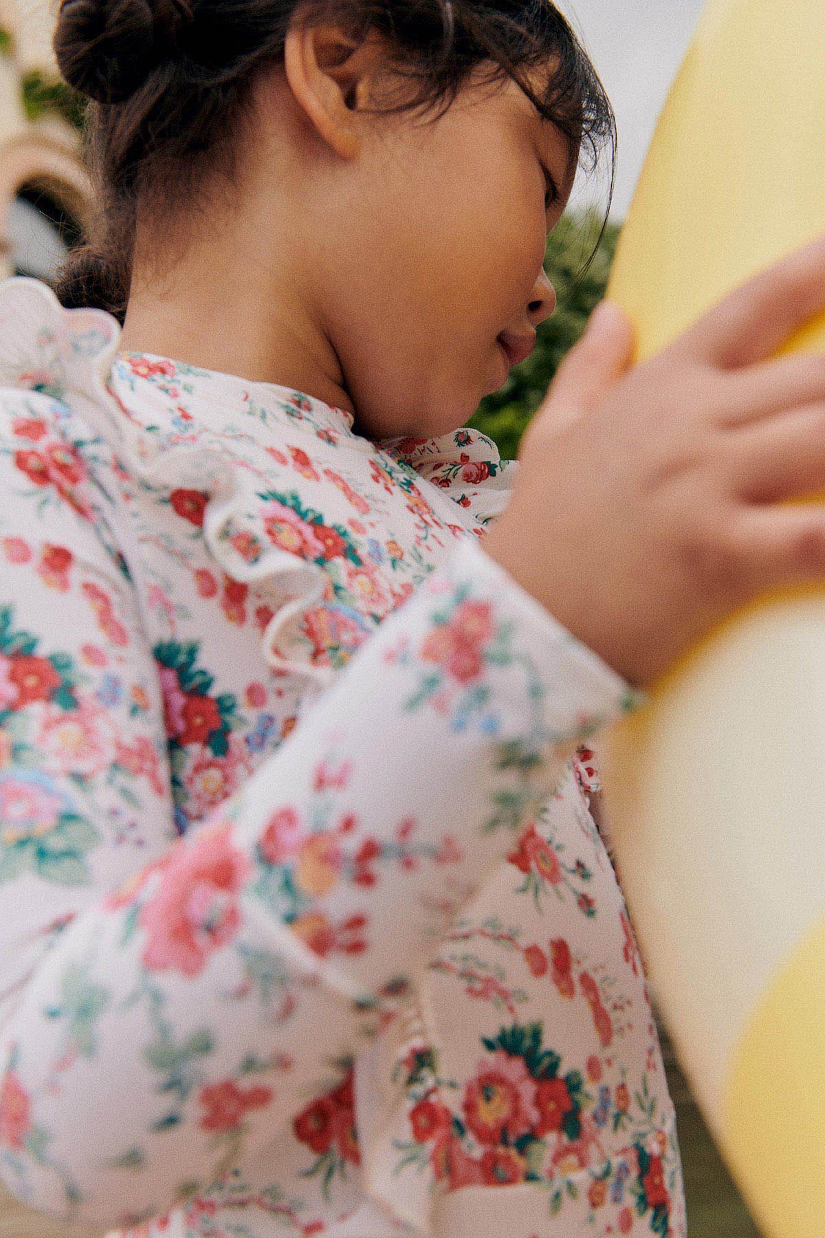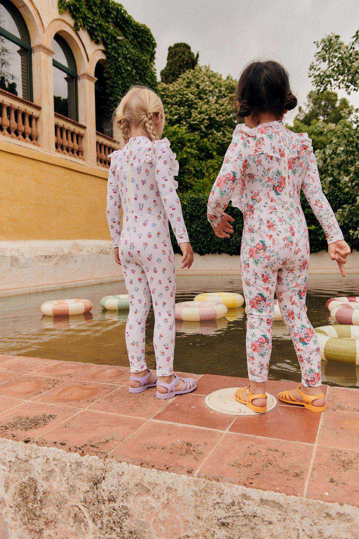 - Combinaison intégrale de type “surf”avec détails volantés devant.