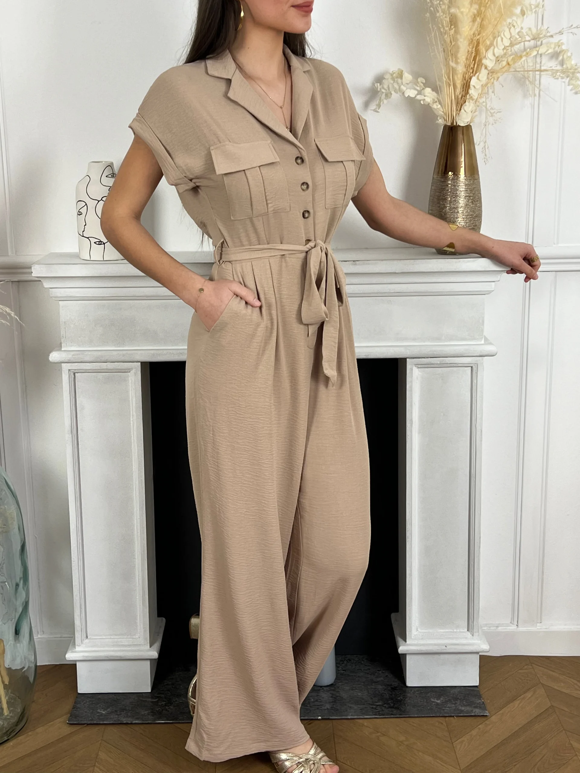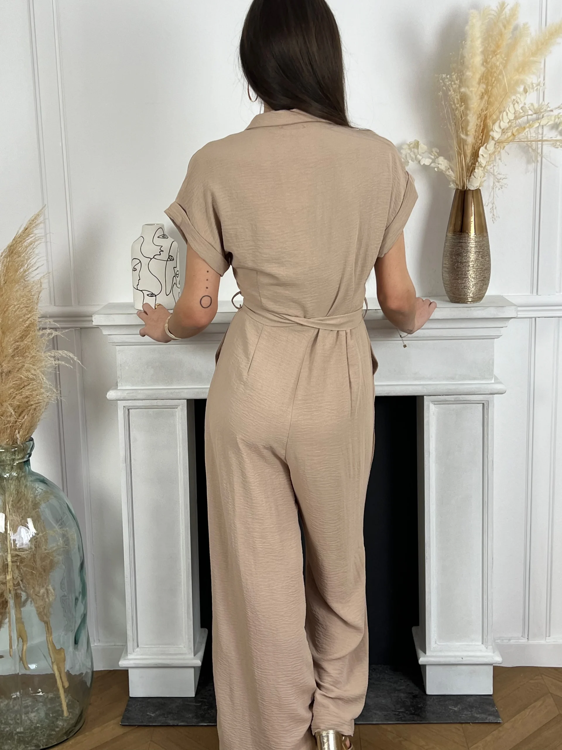 Cette combinaison taupe Milia est à la fois chic et confortable ! Avec ses manches courtes et sa ceinture amovible, elle vous offre un look élégant et féminin. Les boutons sur le haut ajoutent une touche de sophistication. Idéale pour toutes les occasions, cette combinaison est un must-have pour votre garde-robe.