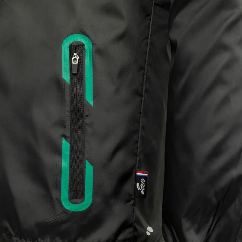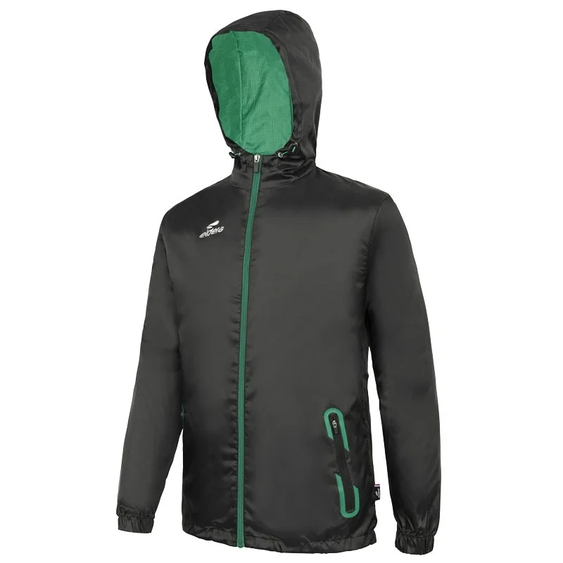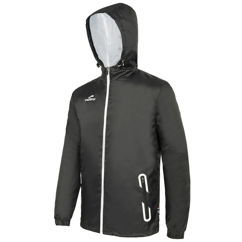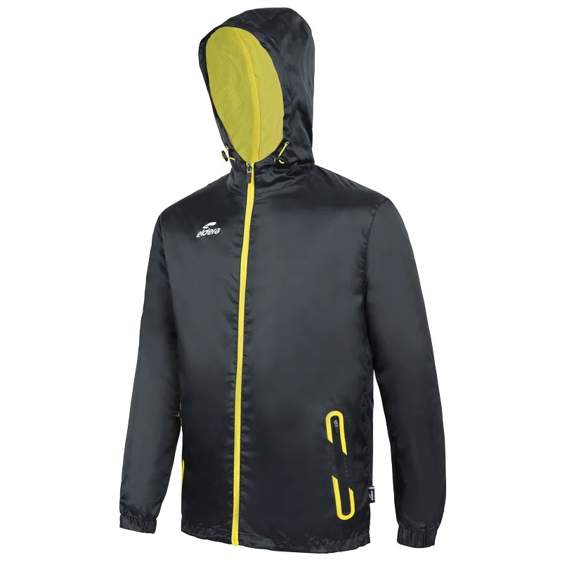 Col montant apportant une protection supplémentaire. Serrage capuche et taille à l’aide d’un élastique bloquant. Manches élastiquées. Logo en silicone sur le haut de la manche. Finitions tours de poches et logos printés. Composition 100% polyester.