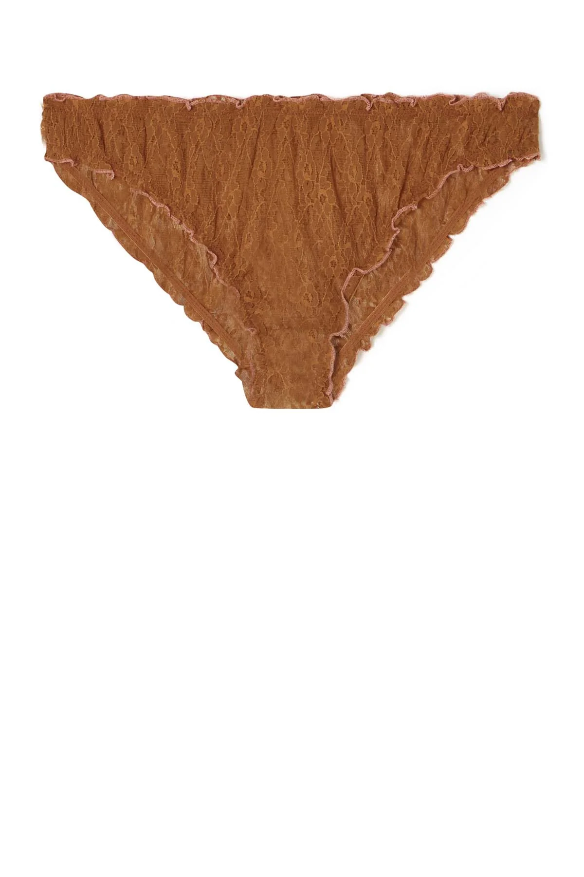 Toute en dentelle transparente, cette culotte crée la différence de par sa légèreté et sa délicatesse. Une coupe froufrou pour une allure vintage et des détails qui subliment la peau pour la touche romantique. À assortir au soutien-gorge Leslie.