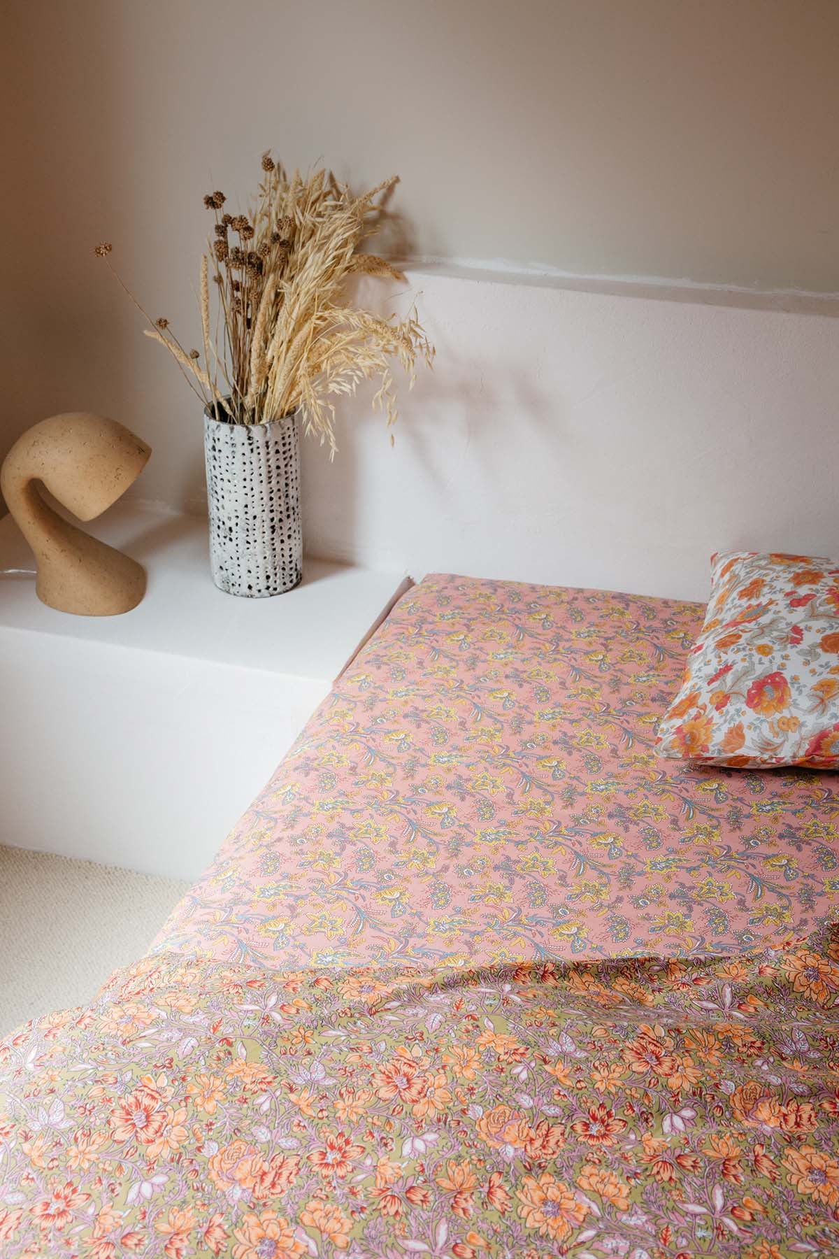 Cette saison, le linge de lit se pare avec douceur des imprimés phares de collection. Draps housse, taies d’oreillers et housses de couette s’harmonisent avec brio pour que vous puissiez vous lover dans les bras de Morphée tout l’été.