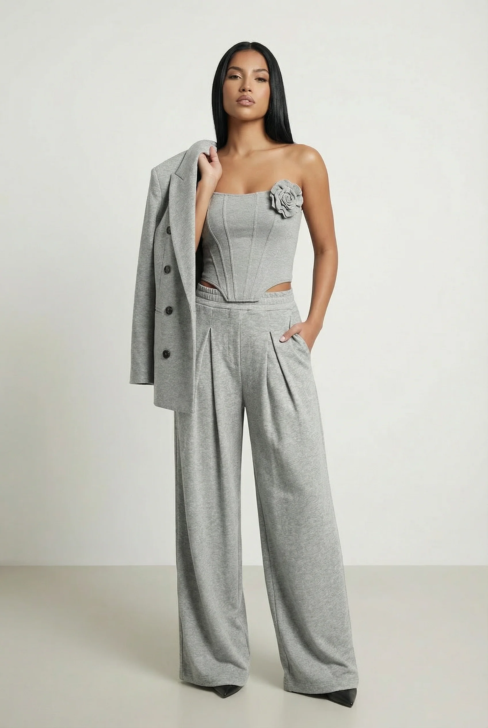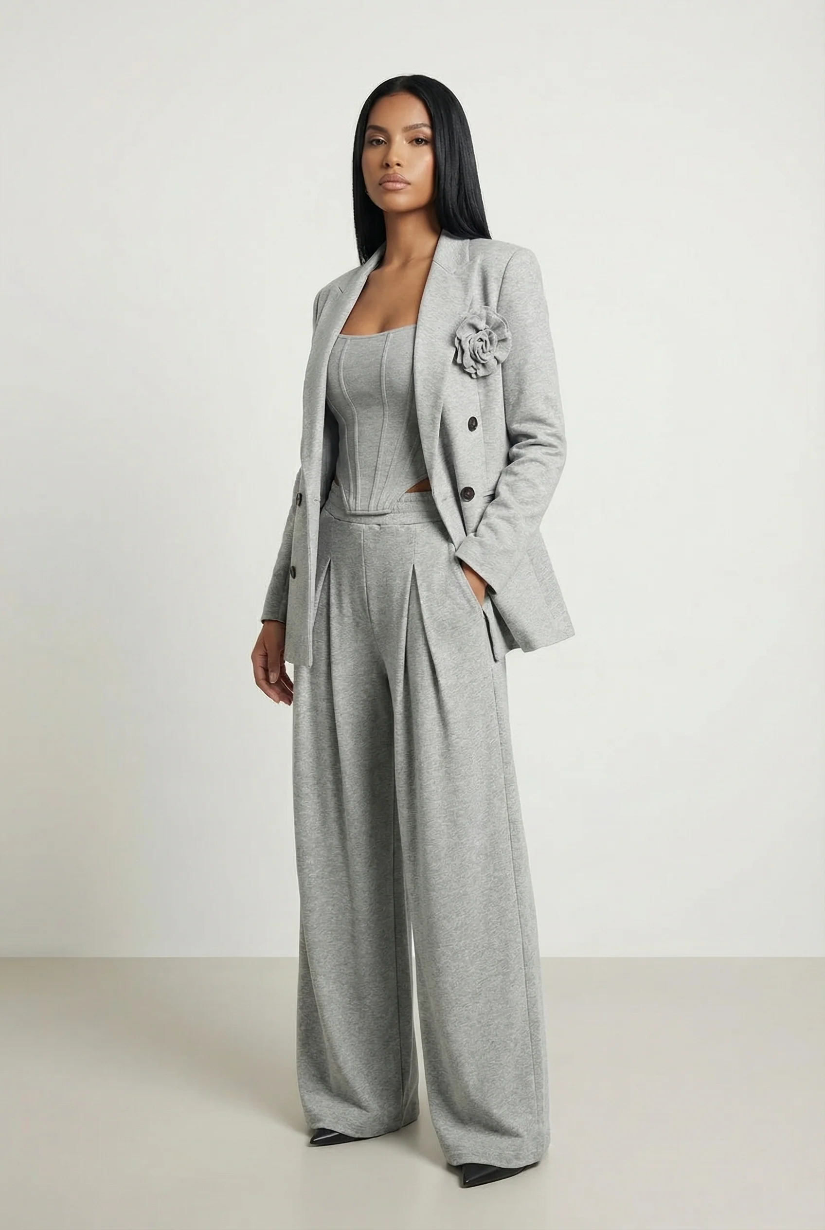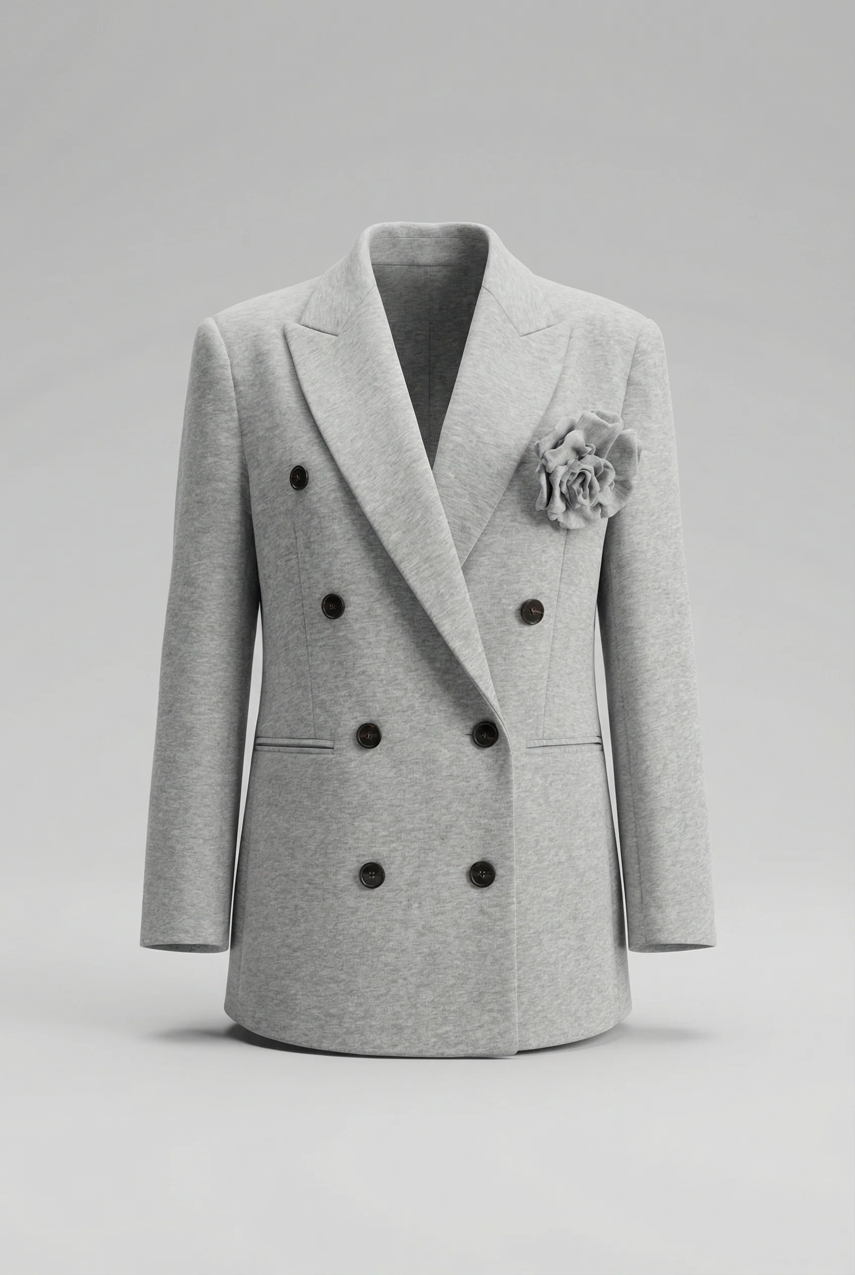 Une veste blazer pensée comme une pièce maîtresse du vestiaire “Ladies in Paris”. La coupe se veut nette, avec une ligne tailleur structurée et un col à revers. Le double boutonnage dessine une allure affirmée, facile à porter du matin au soir. Le détail floral appliqué sur la poitrine ajoute une signature délicate, entre esprit couture et élégance parisienne.