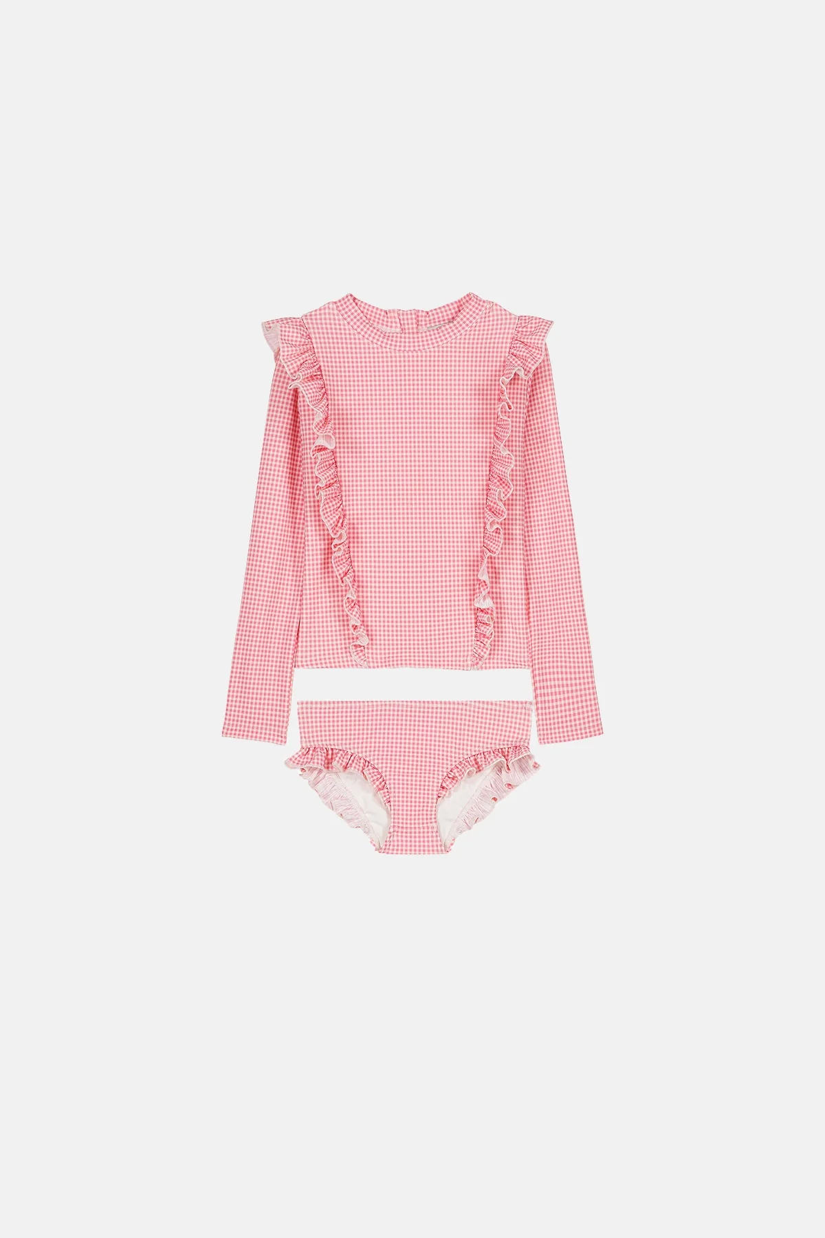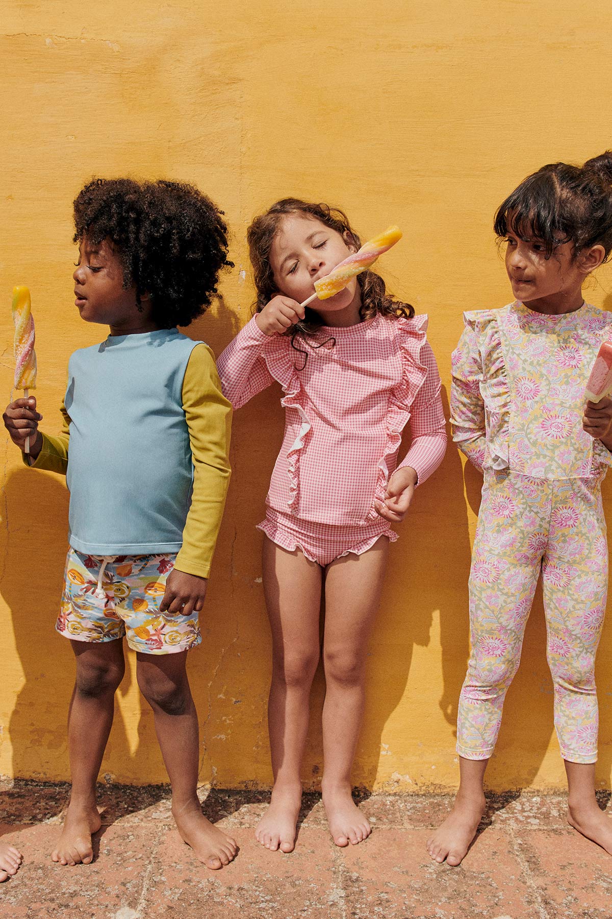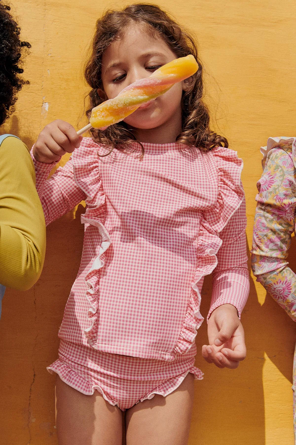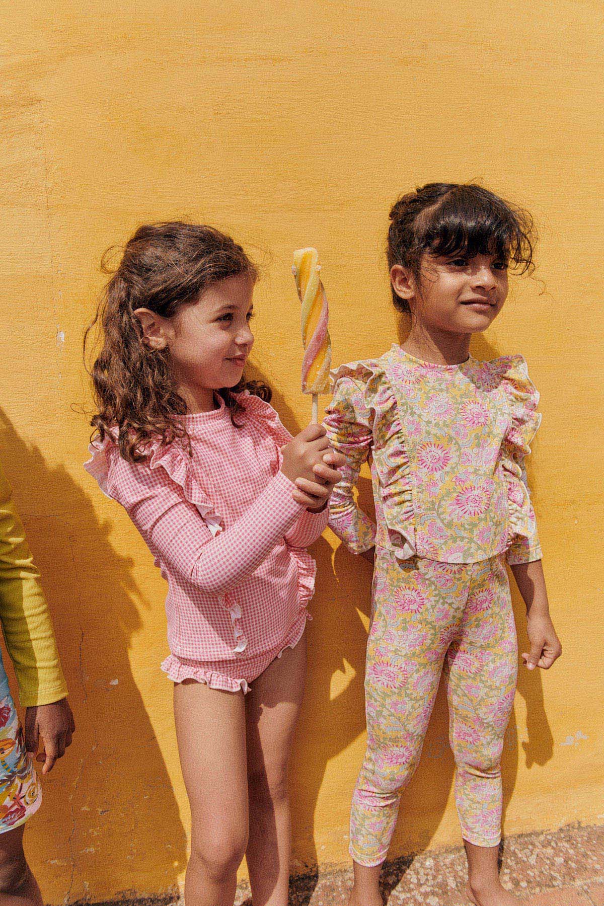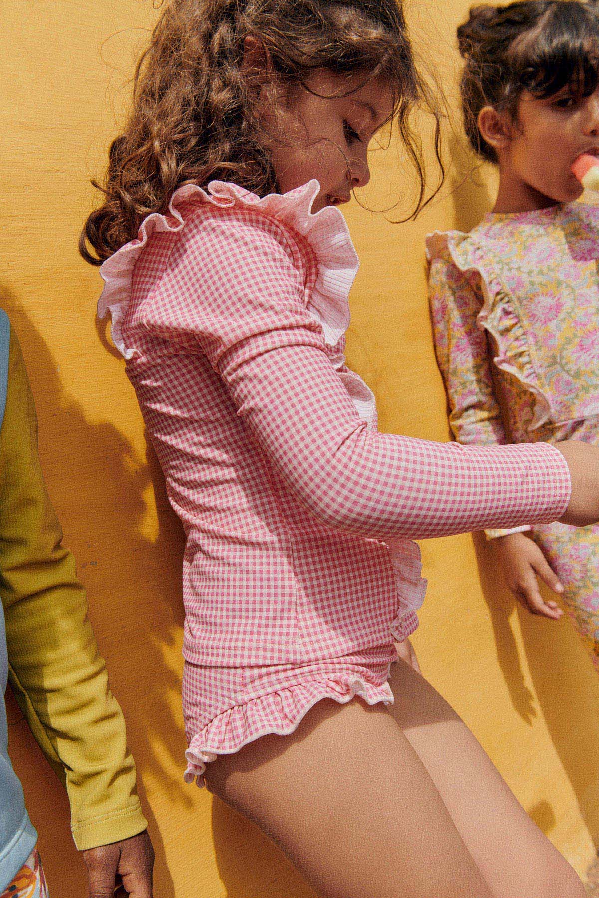 - À noter : forme bloomer et volants situés à la taille pour les modèles inférieurs à 3 ans.