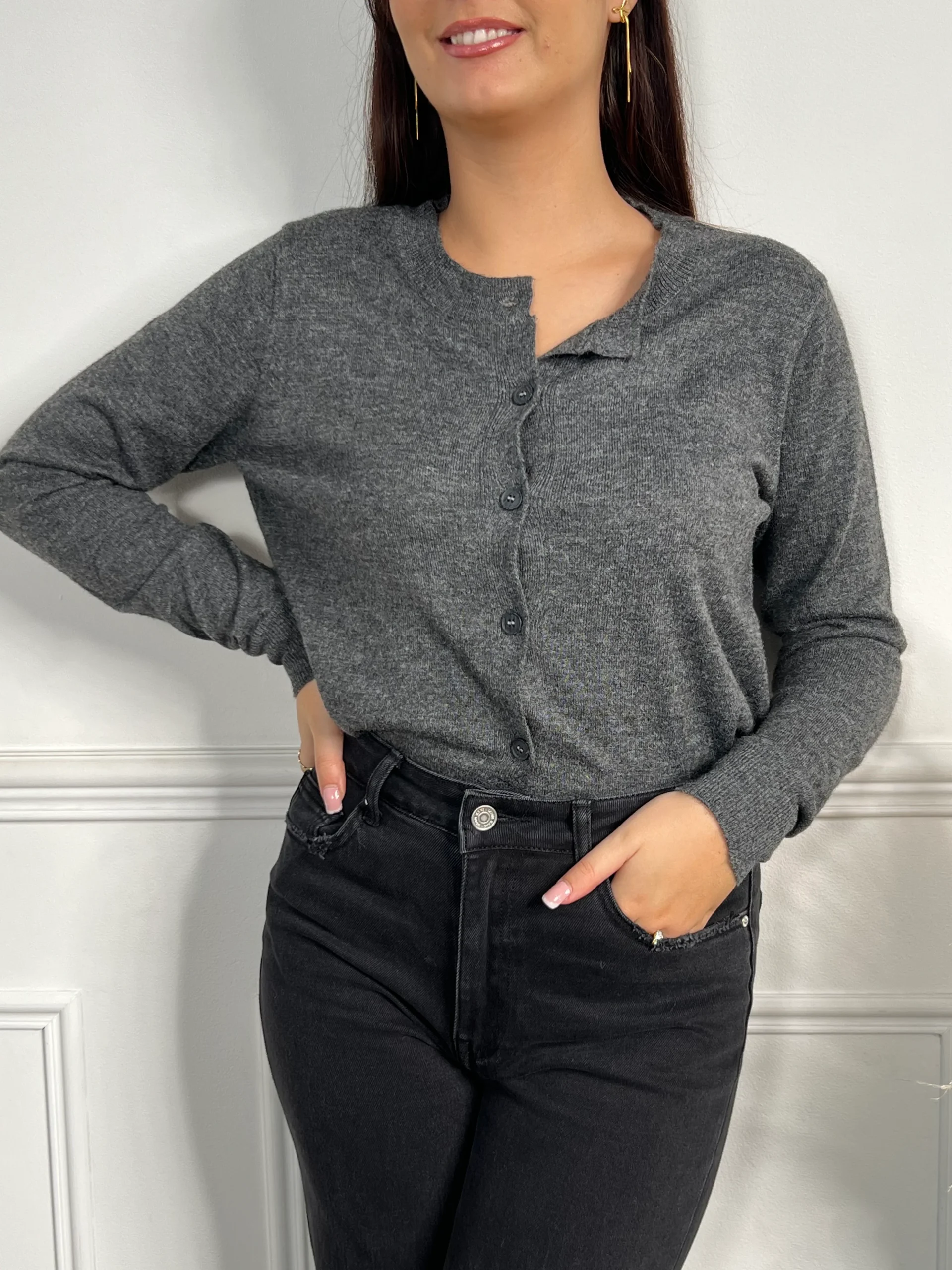 Craquez pour ce gilet fin gris, parfait pour un look léger et élégant. Avec ses manches longues et son col rond, il se distingue par sa simplicité et son confort. Les boutons sur la longueur ajoutent une touche pratique et raffinée, tandis que sa matière fine en fait un incontournable pour toutes les saisons.