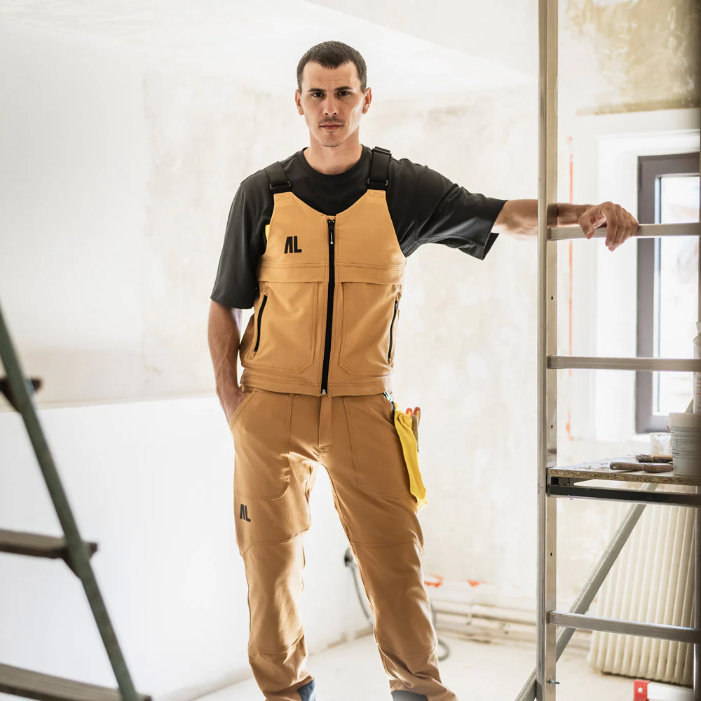 Un gilet de travail ingénieux et iconique, ce vêtement associé au pantalon devient un véritable partenaire 2 en 1 pour créer l’emblématique cotte à bretelles LAFONT. Ses bretelles réglables avec sangles élastiques permettent une adaptation propre à chaque individu. Fonctionnel, ce vêtement est muni de passants d’attaches sous rabats qui permettent la fixation des poches amovibles à l’avant et à l’arrière pour plus de fonctionnalités produits. Des poches côtés avec biais élastiques font office de porte gourde ou rangement additionnel.
