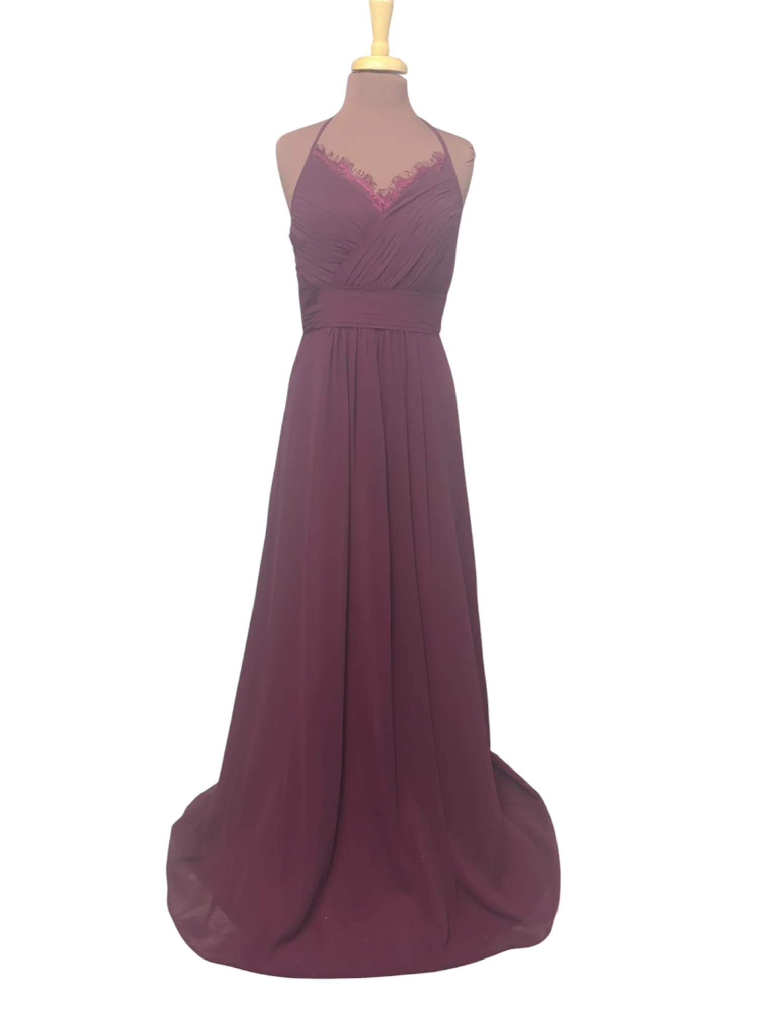 Associez cette robe avec des accessoires dorés ou argentés et des talons élégants pour une touche de glamour. Une coiffure relevée ou semi-attachée mettra en valeur le col licou et la dentelle subtile.