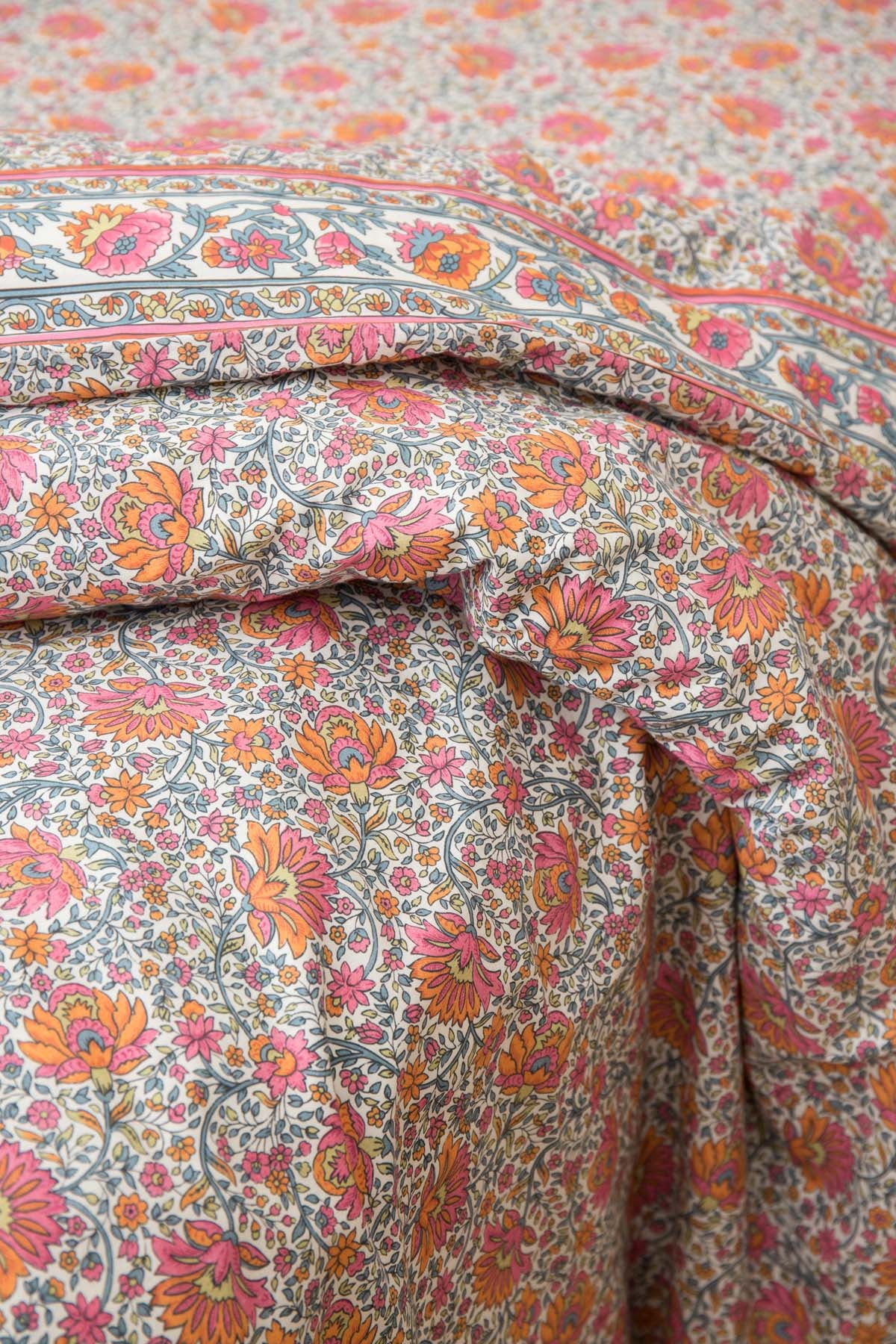 Cette saison, le linge de lit vous berce de sa poésie. Draps-housses, taies d’oreillers et housses de couette s’habillent d’imprimés bohèmes pour que vous puissiez vous endormir dans un lit de fleurs.