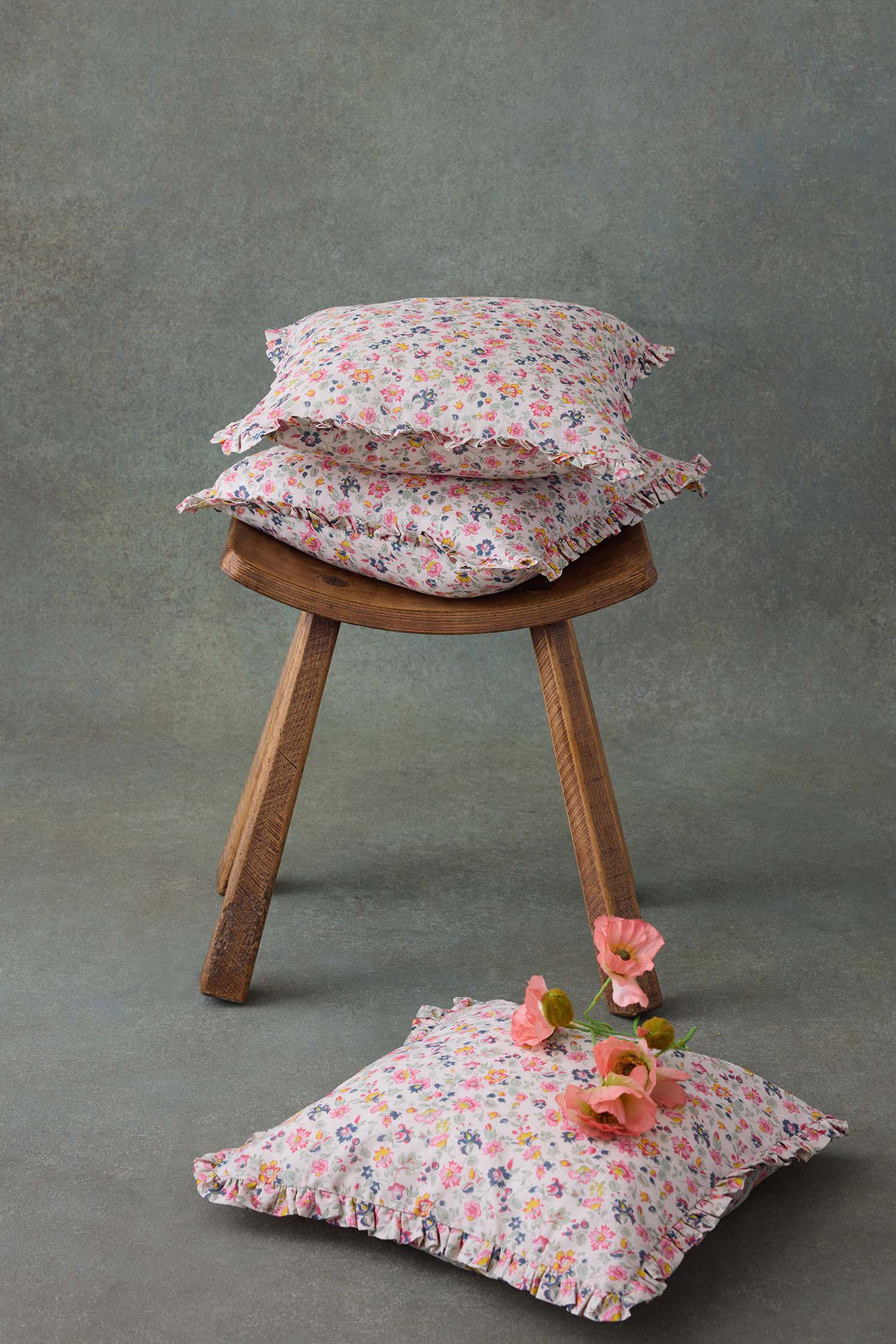 - Housse de coussin décorative en voile de coton fleuri.
