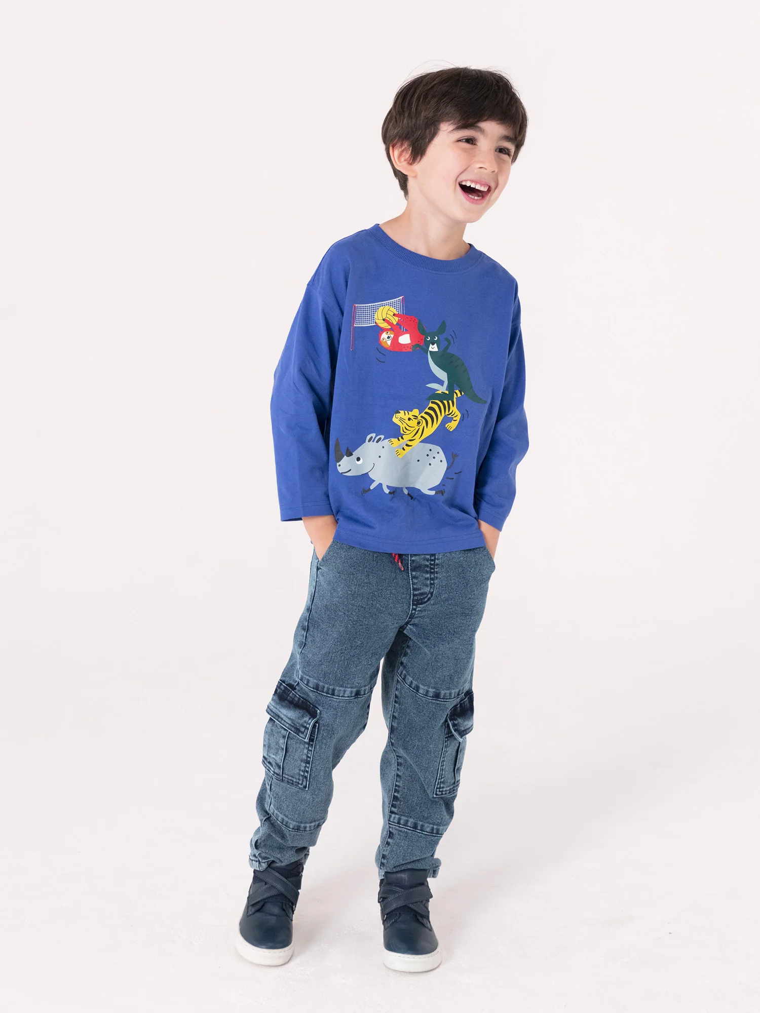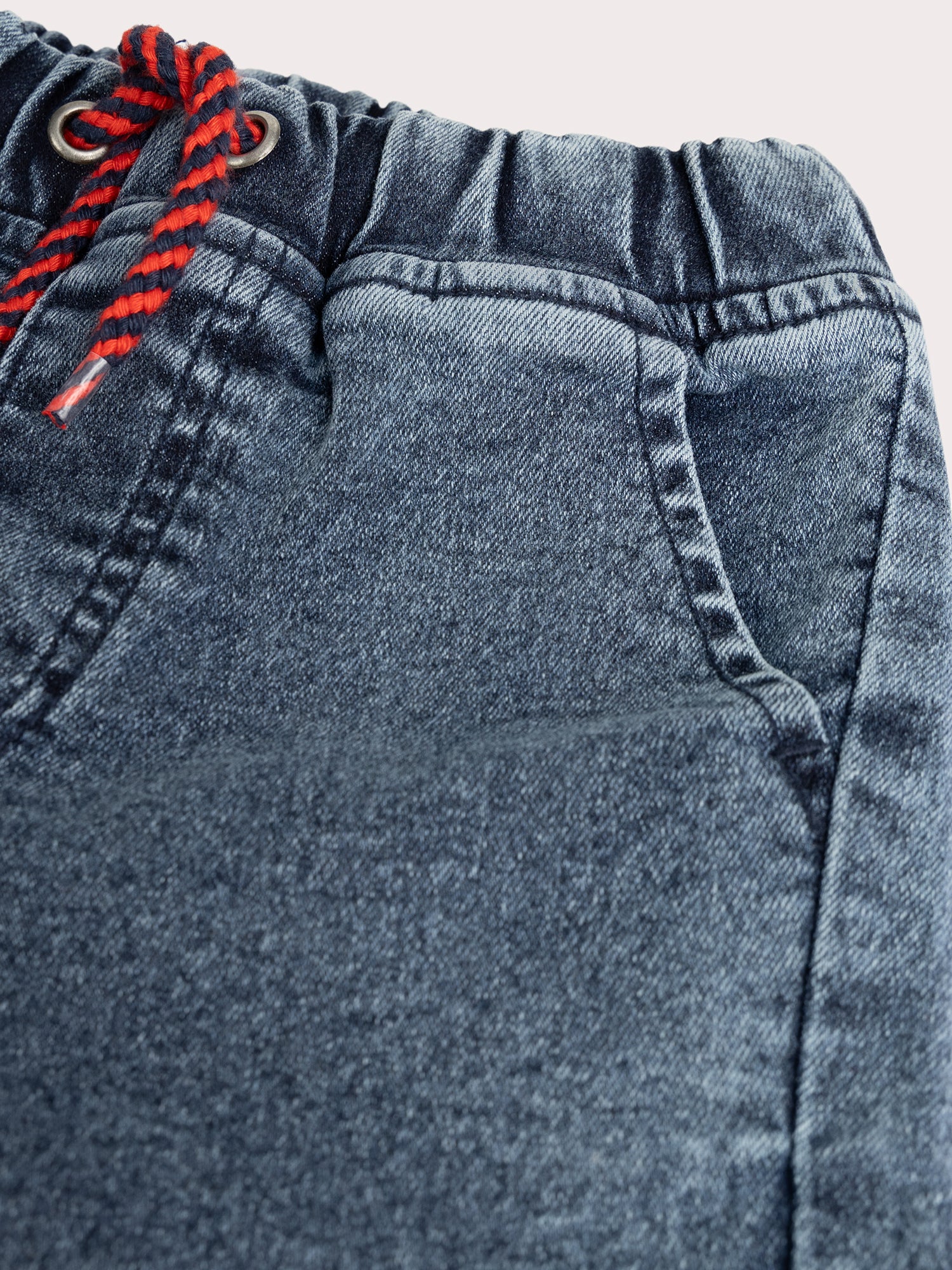 Ce jean denim cargo est idéal pour les garçons actifs en toute saison. Conçu en coton, il allie confort et praticité avec une taille élastiquée et un cordon de resserrage bicolore. Les deux poches avant, les deux poches latérales et la poche arriere offrent amplement de rangement pour leurs aventures quotidiennes.