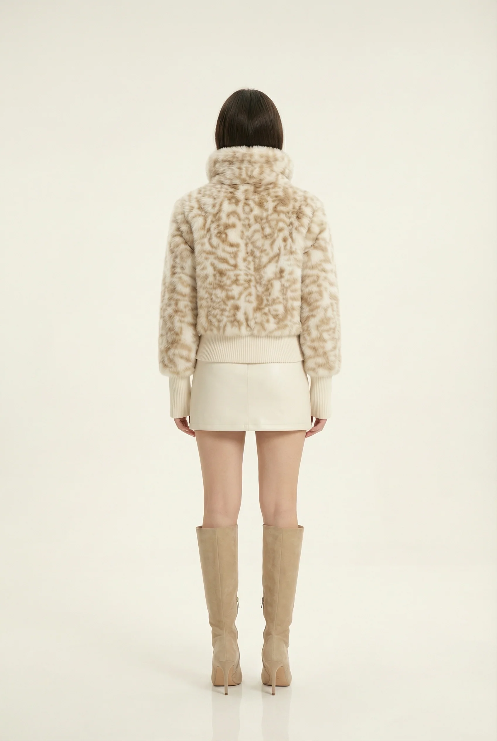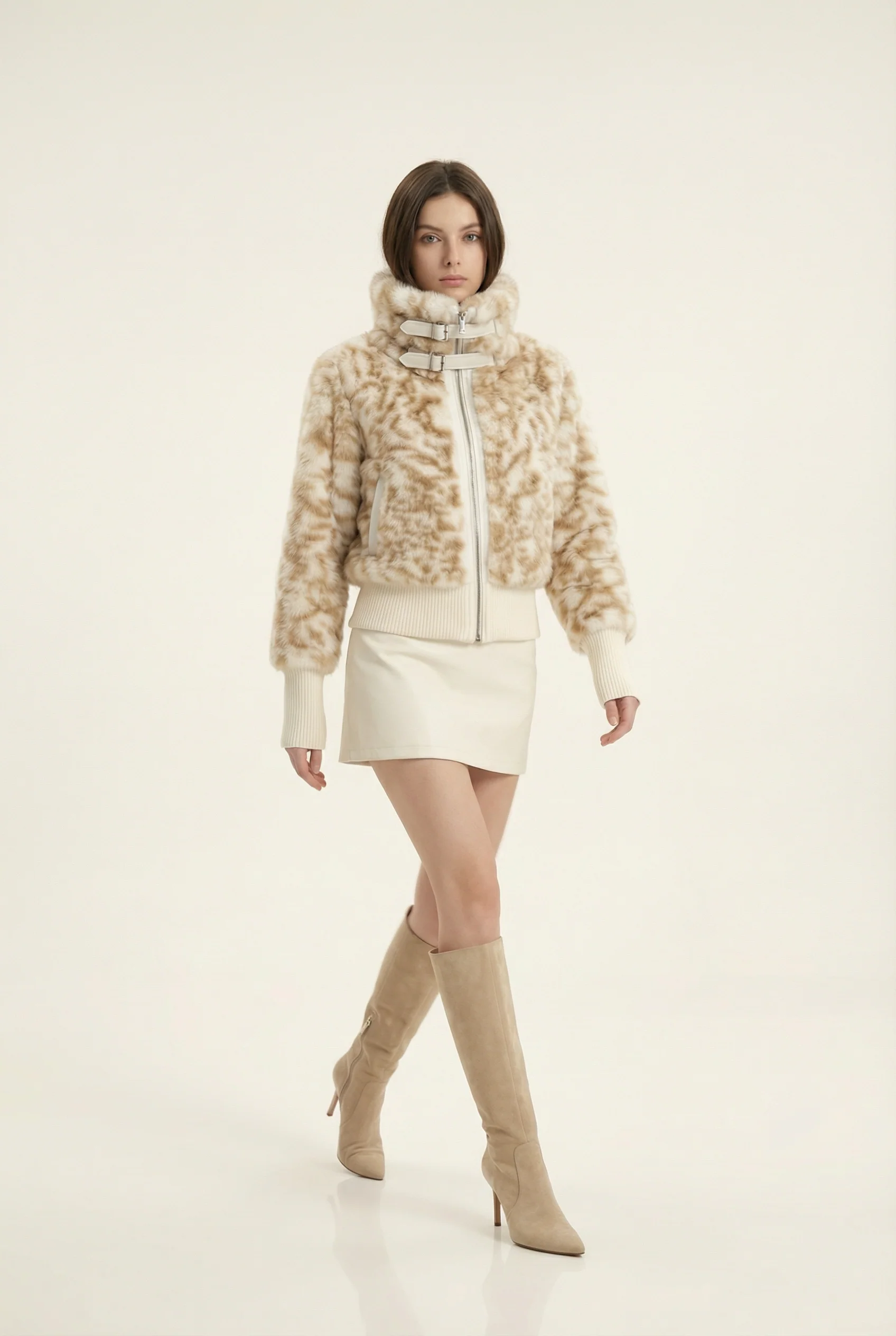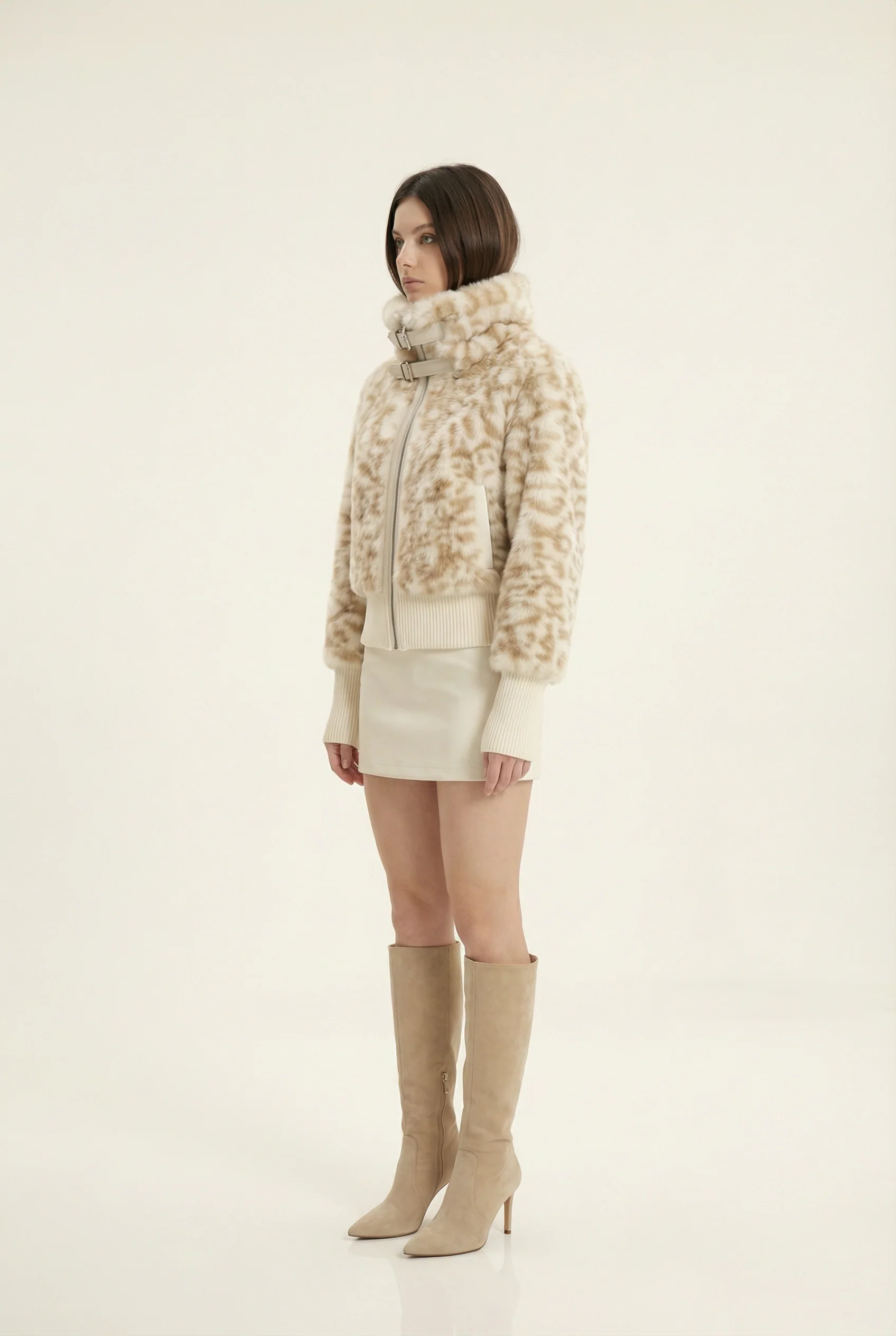 Julie Veste Courte Col Montant – Beige & Café