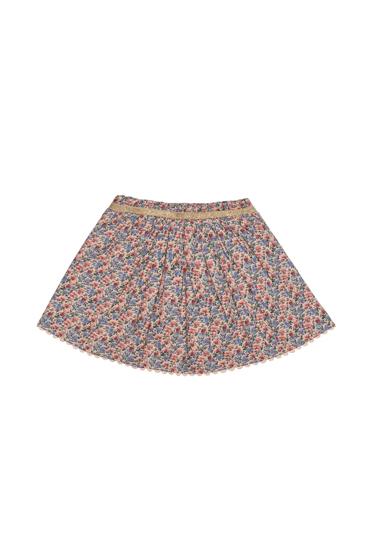 - Taille élastiquée avec galon doré.