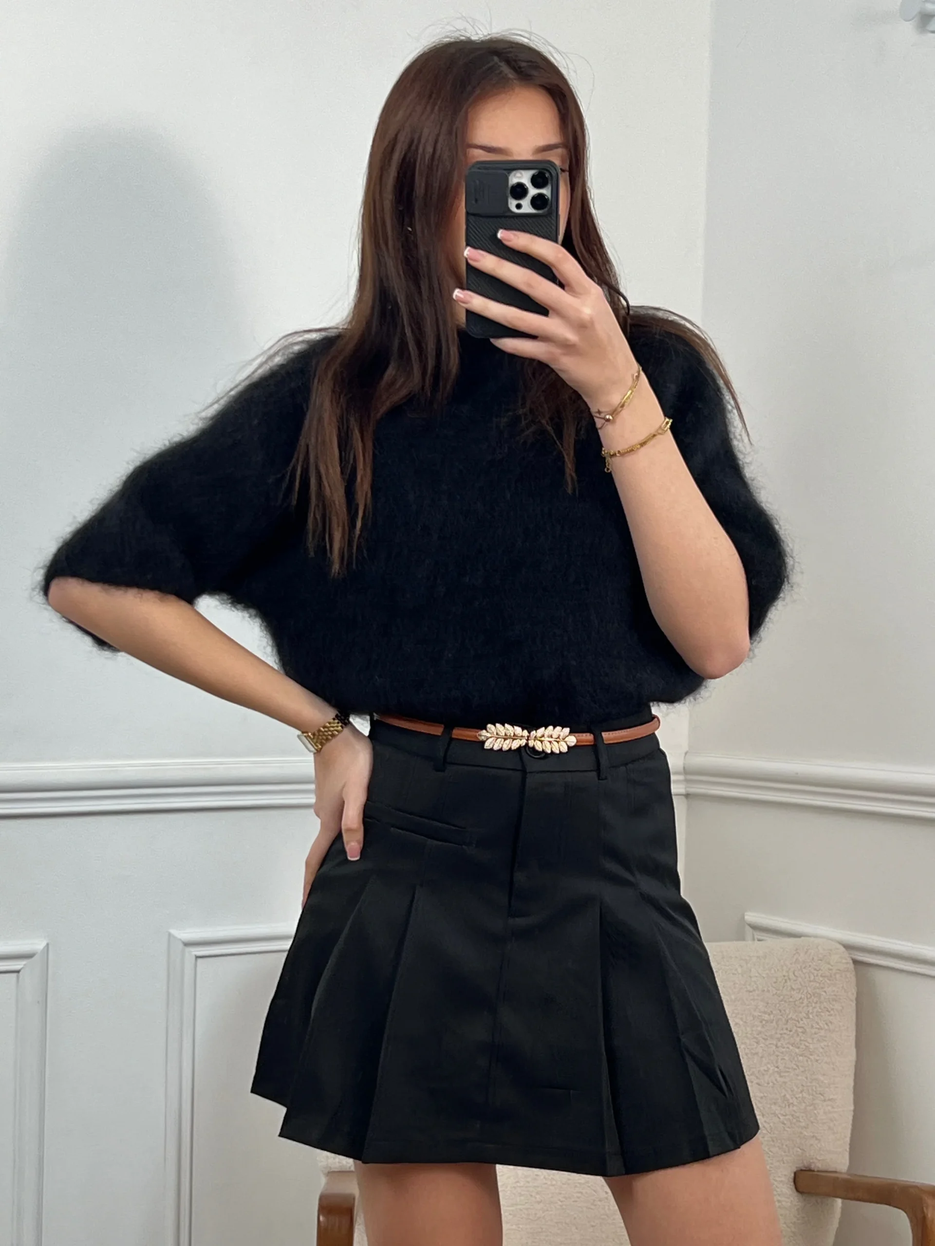Découvrez notre Jupe short noire Lia ! Avec son effet plissé sur le bas et sa poche factice sur le devant, elle allie style et confort. Parfaite pour les occasions décontractées, elle ajoutera une touche d’élégance à vos tenues. Soyez irrésistible avec Lia !