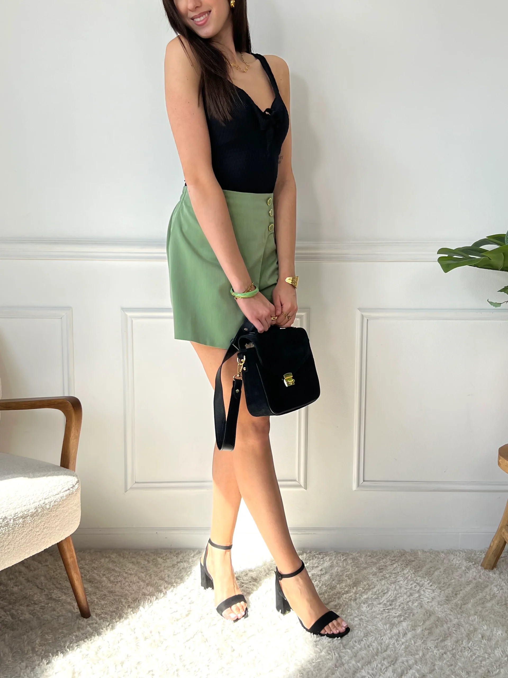 JUPE SHORT COURTE VERTE AVEC BOUTONS