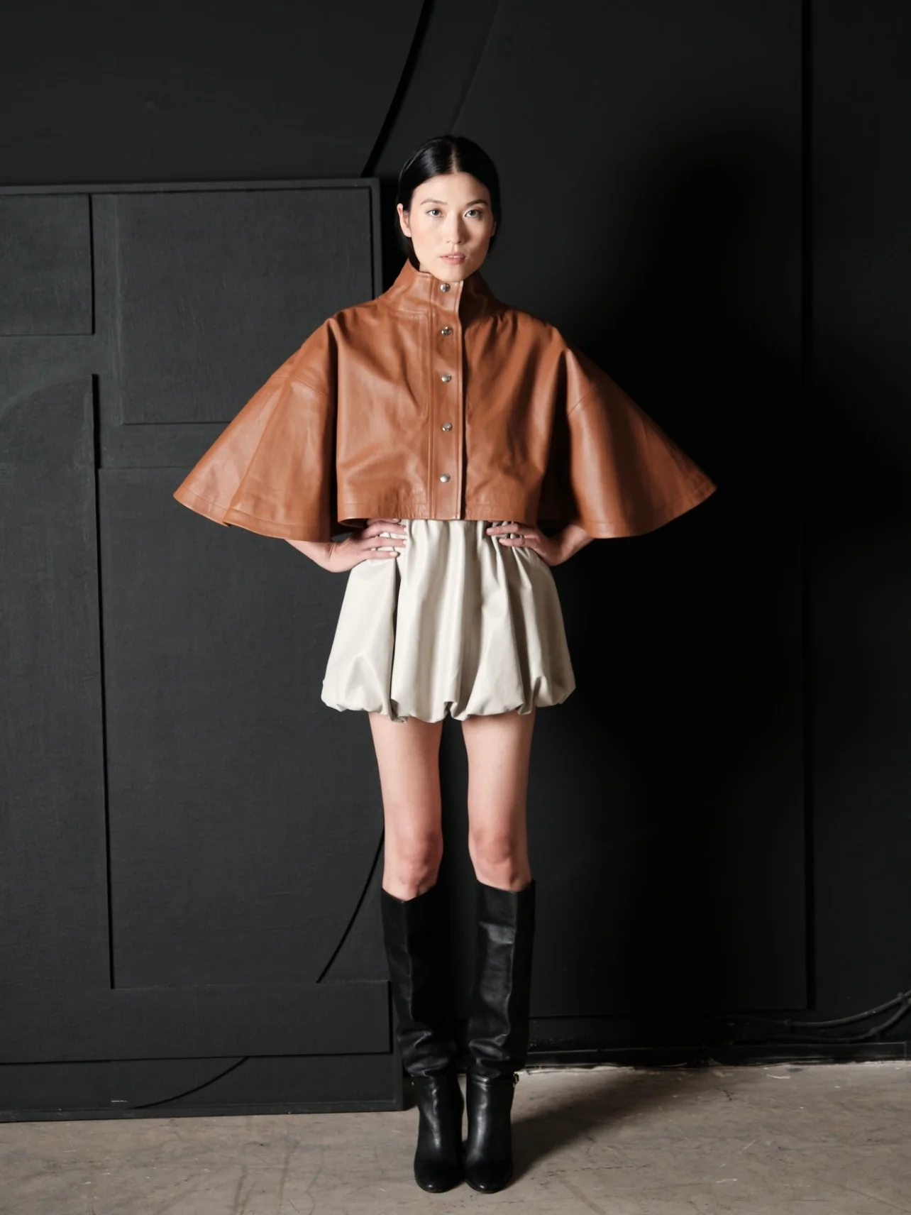 Cette cape en cuir est dotée d’un col montant et d’une coupe oversize et moderne. Une taille unique pour épouser tout type de silhouette! Légère et confortable, cette cape vous apportera un style casual chic sans effort.