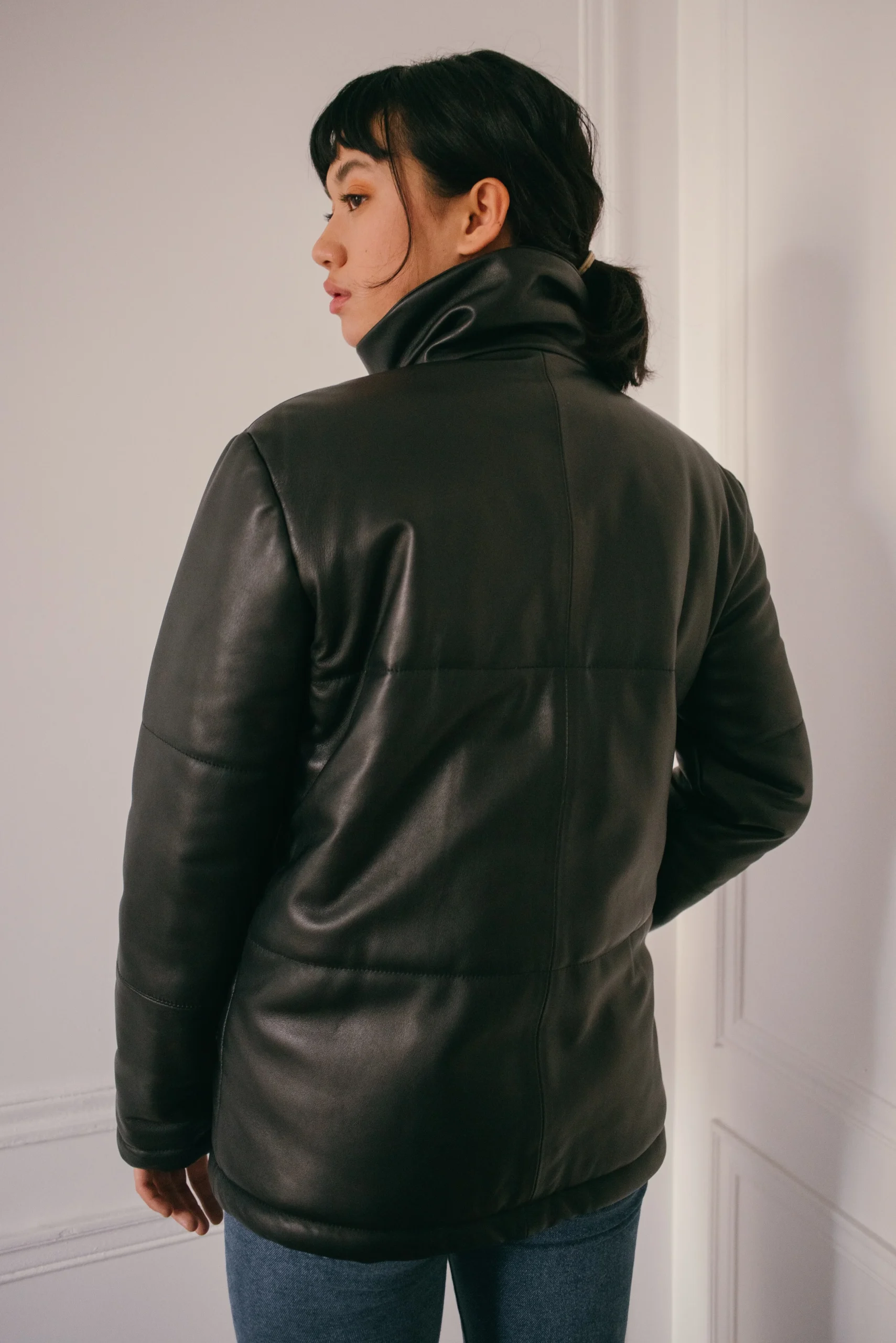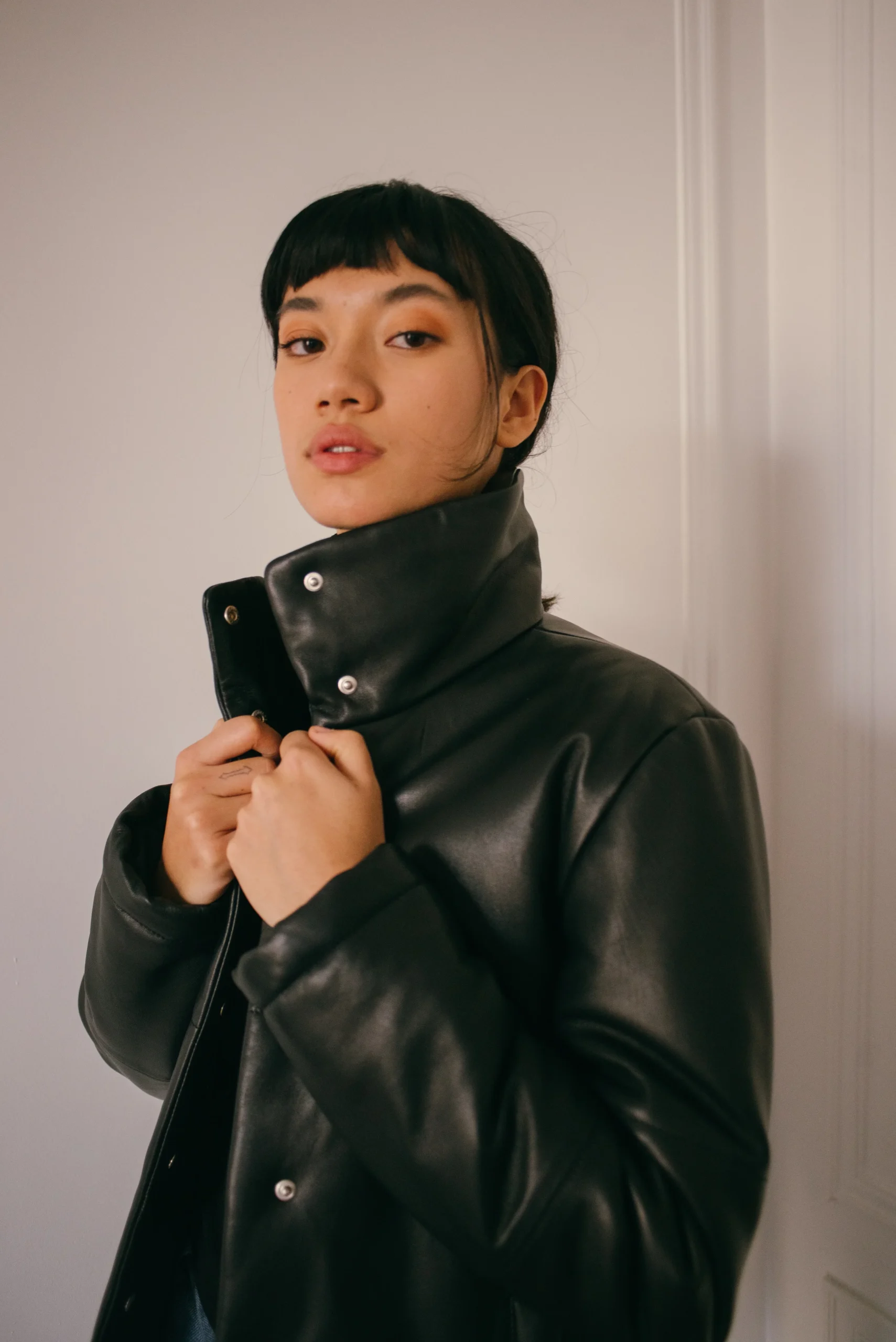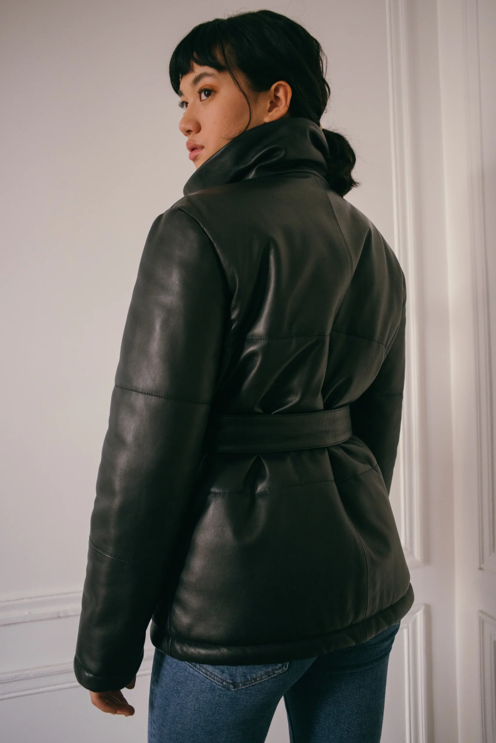 Cette doudoune en cuir saura vous réchauffer cet hiver avec style! Grande tendance, vous pouvez la porter oversize ou encore cintrée avec sa ceinture amovible. Pièce de toute une vie, cette doudoune est un must-have à avoir dans son placard!