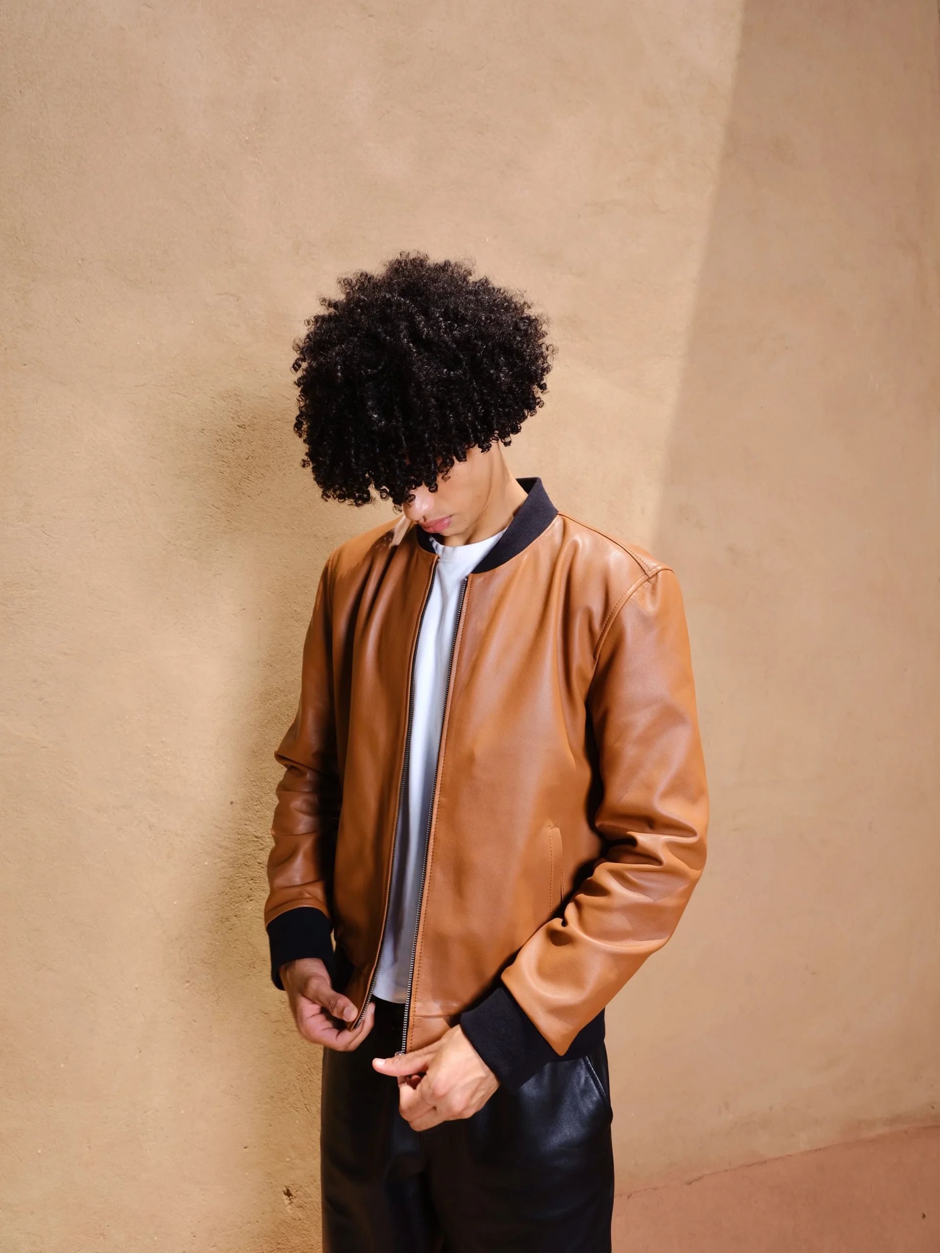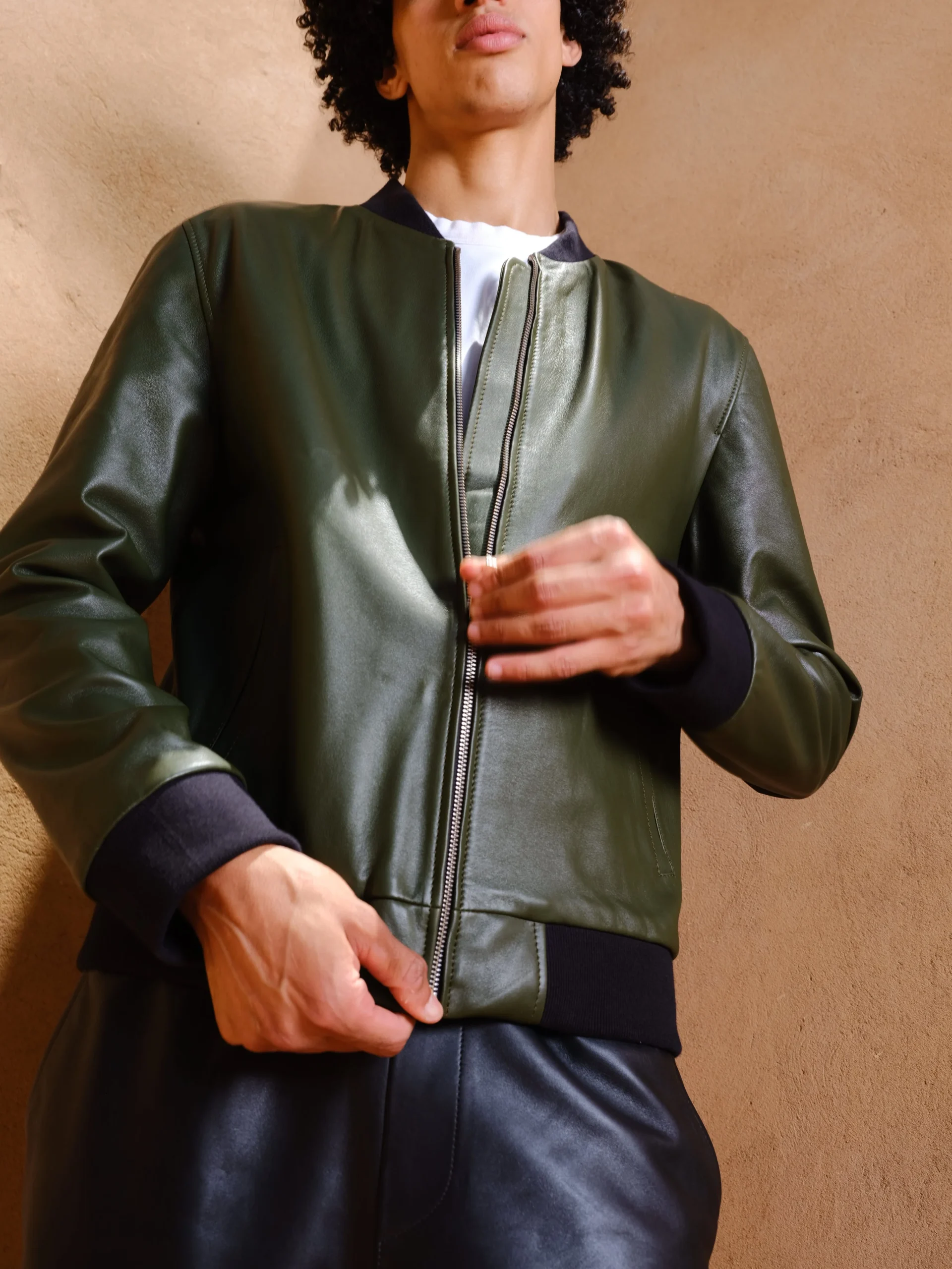 Notre bomber est fait dans un cuir souple et lisse pour un confort optimal! Il est doté d’une coupe structurée et affutées pour un look minimaliste qui saura flatter votre allure.
