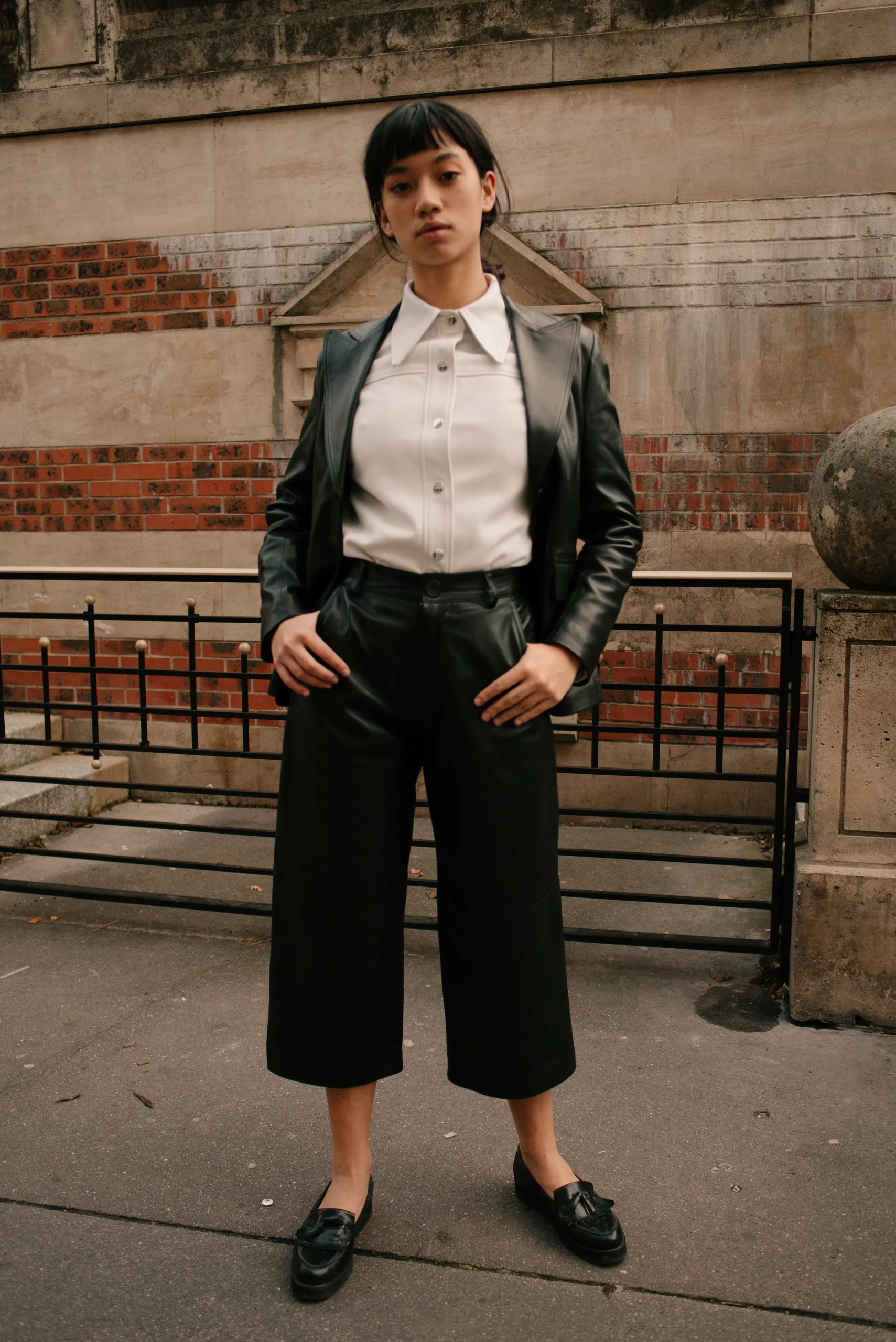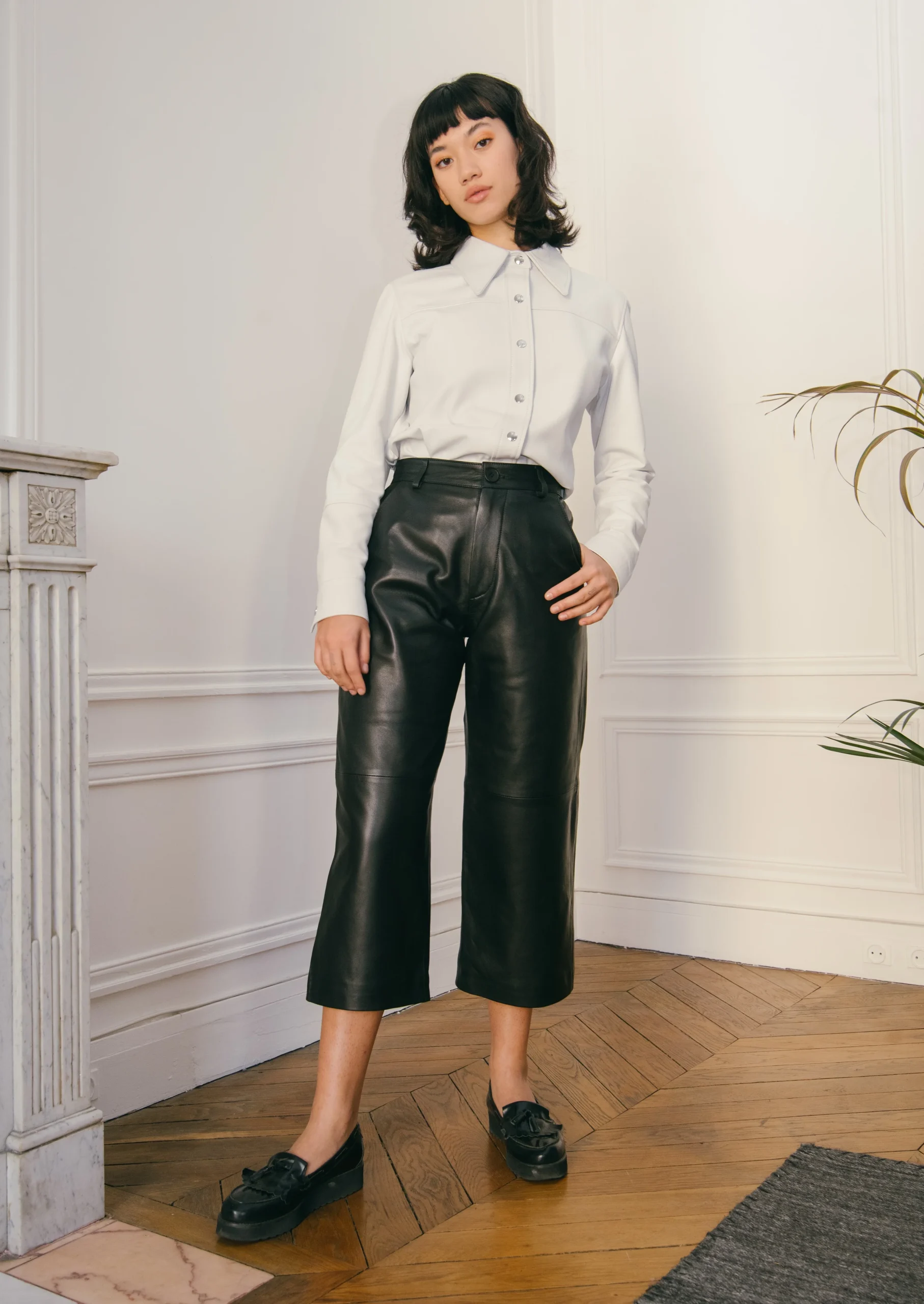 Grande tendance ces derniers temps, la jupe culotte est un incontournable pour les fashions-addict et spécialement en cuir! Ce panta-court est parfait pour vos looks boulot comme pour aller au resto!Taille haute, il est doté d’une fermeture cachée par zip à l’avant avec un bouton noir mat.