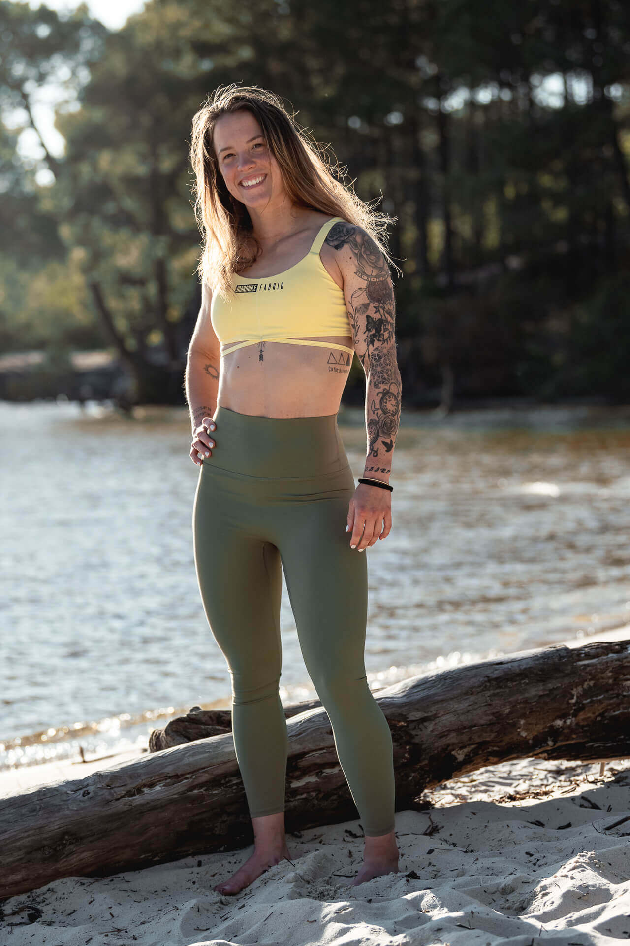 Craque pour notre nouveau legging Kaki ! Une couleur parfaite, qui ira avec toutes tes tenues. Une ceinture gainante et une coupe performante qui s’adapte à chaque exercice 💪 et enfin, une matière seconde peau hyper confortable et agréable à porter même pour chiller 😎