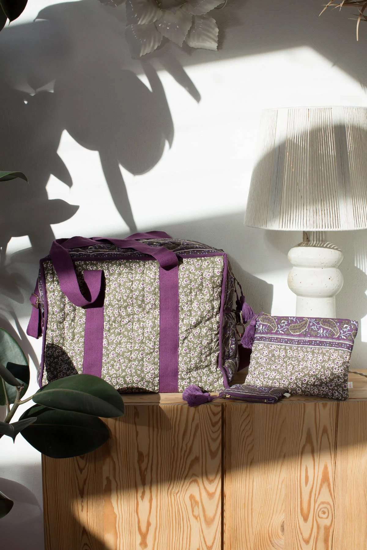 - Sac de voyage matelassé en voile de coton.