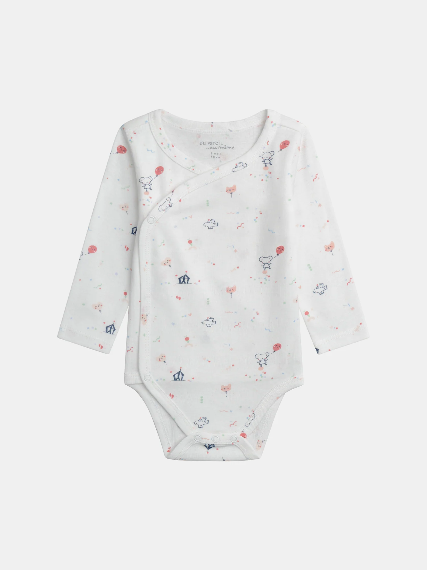 Ce lot de 2 bodies naissance en côte de coton comprend un modèle imprimé et un modèle décoré d’un motif ours, avec une ouverture totale devant par boutons pressions et une forme cache-cœur facile à enfiler. Il apporte confort et praticité pour accompagner sereinement les premiers jours de votre bébé.