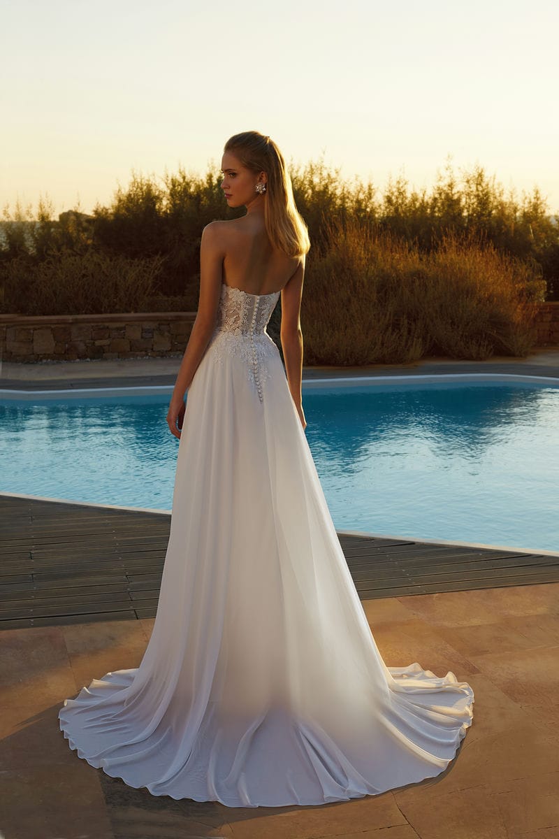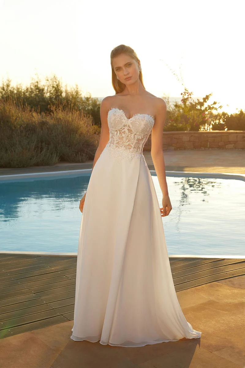 Description: Une robe de mariée qui est venue pour enjoliver votre sourire avec sa fente sexy et son corset, son corsage transparent avec de la dentelle perlée. En ce qui concerne le haut en forme de cœur, portez les manches pour la cérémonie et optez pour le bustier pour la fête ! Les possibilités sont infinies. Manches amovibles assorties SL29 (vendues séparément).