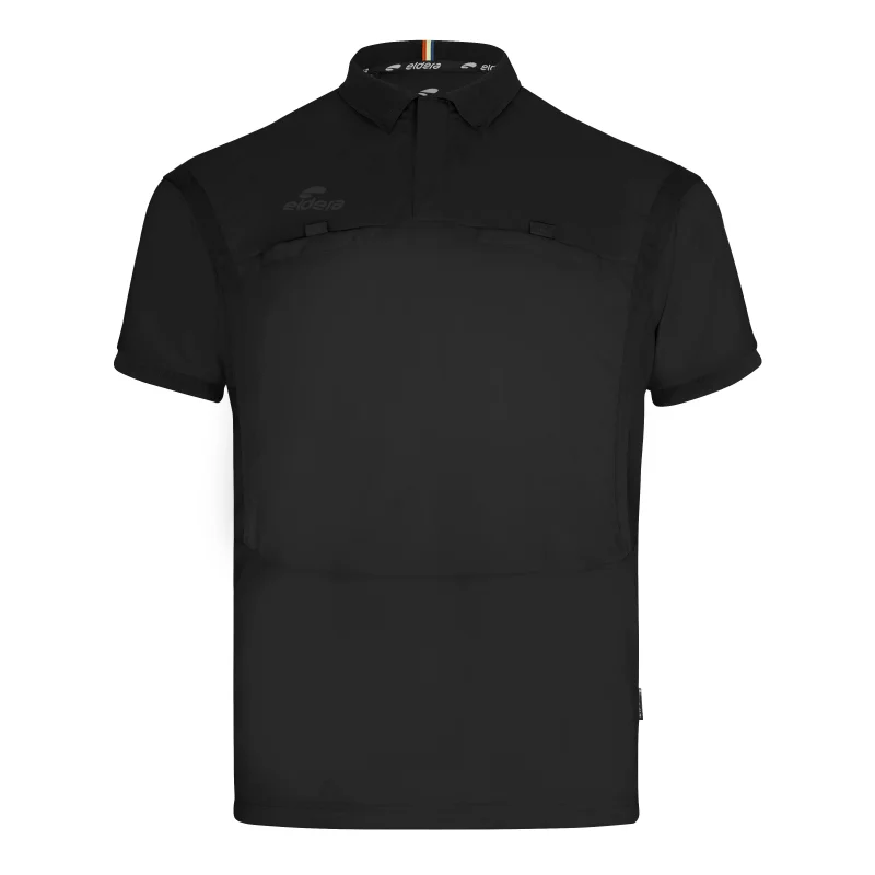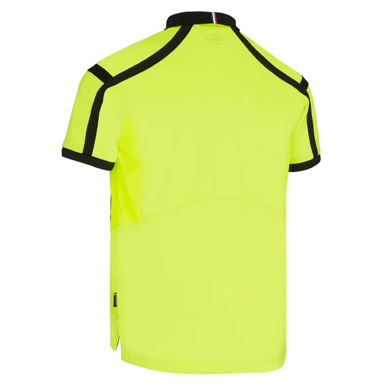 Maillot en polyester interlock avec doubles poches sur le buste avec fermetures scratchs. Empiècements bretelles contrastantes et inserts mesh sous les bras ergonomique, permettant d’éliminer la transpiration. Col de type polo avec finition en bords-côtes contrastés et fermeture à l’aide de boutons aimantés. Fentes latérales pour une liberté de mouvement totale. Bande de propreté dans le col avec détail tricolore. Logo printé 3D sur la poitrine. Composition 100% polyester.